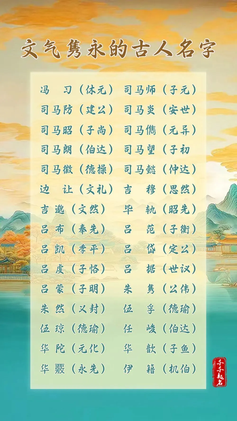 沐谦:沐带水,调和马年燥气,谦而有礼,涵养深厚