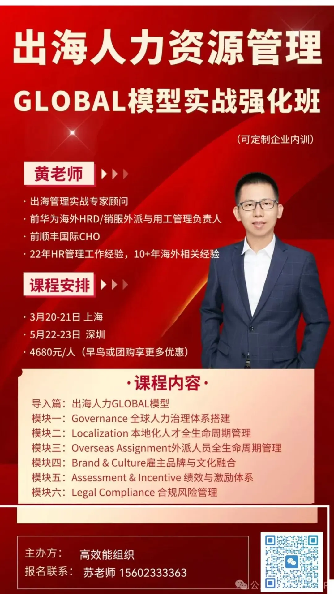 升级版!出海人力资源管理:GLOBAL模型实战强化班(附赠实操工具模板)