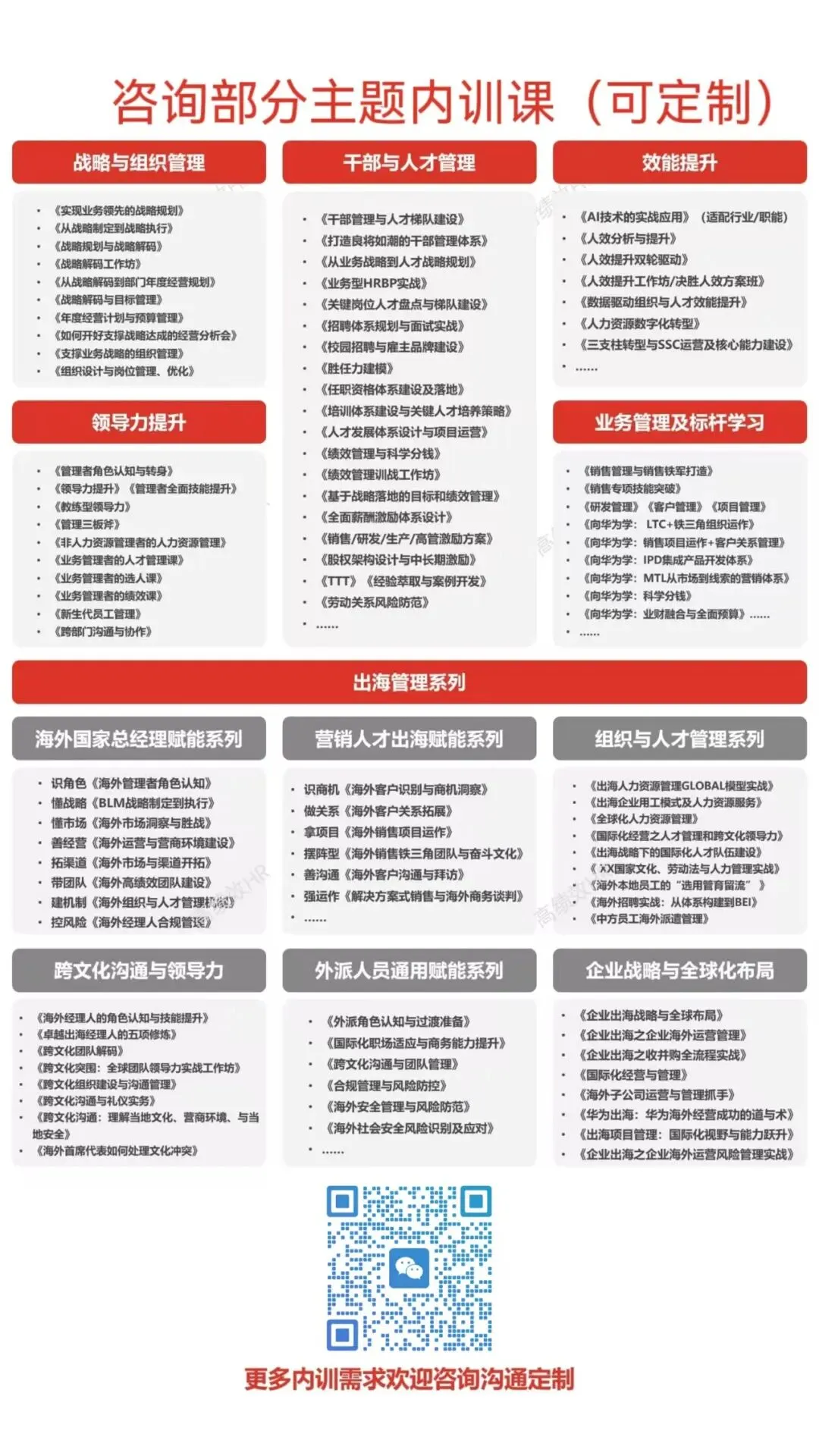 40+场景案例贯穿教学:涵盖海外组织设立、工厂孵化、招聘解雇、薪酬激励、跨文化冲突等多场景案例,提升学员应对复杂海外环境的能力。 -