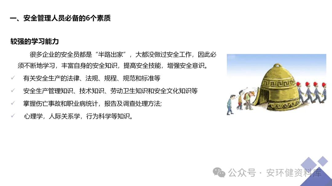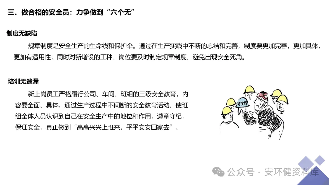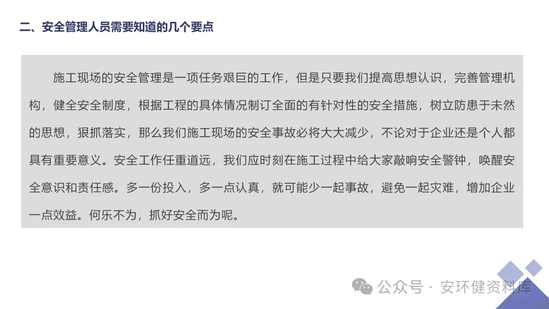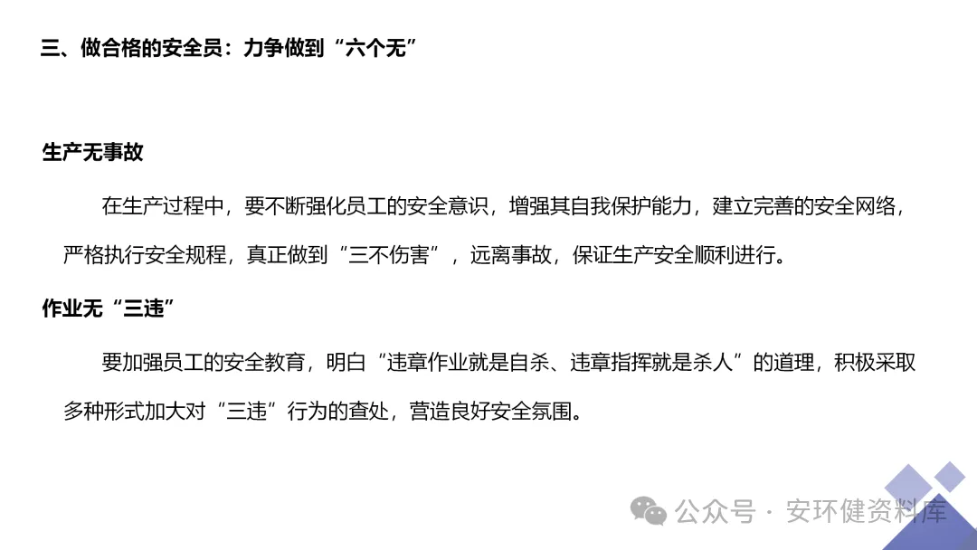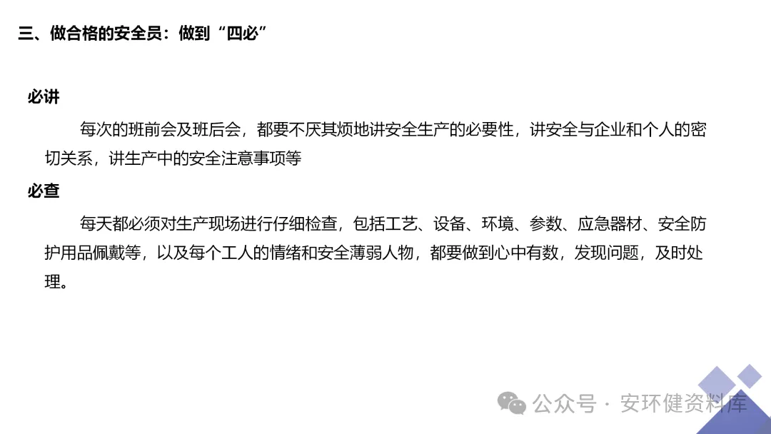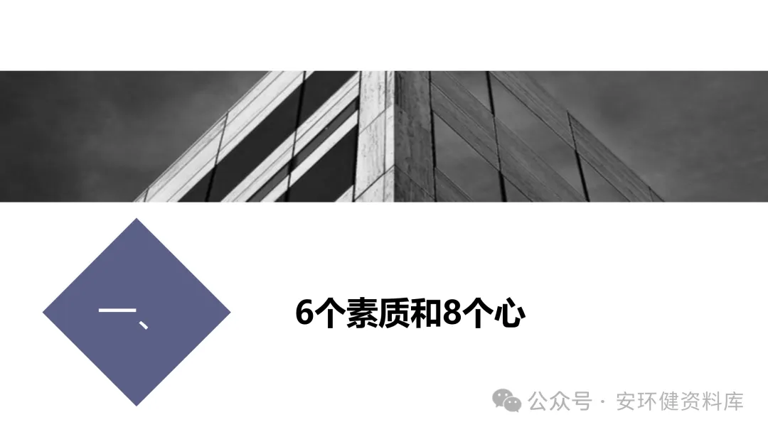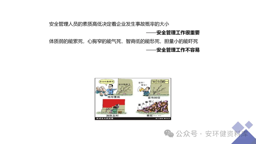 安全员必备技能丨62页.pptx 安全人必备的安全资料库 安环健资料库,海量EHS资料,不只有标准化、双体系、各行业隐患标识清单、环境管理、职业健康管理、EHS培训题库、安全法律法规、各系列培训课件等多方面EHS系列文件,我们不会上传垃圾文件凑数,你如果您需要百度文库,请您选择别的平台!因为,EHS老站必出精品,所有资料,无限制下载,持续更新!让你的资料获取更便捷,学习更简单。已有16000+安全同行加入!(小编微信交流:anhuanjia01) 长按/点击下图预览目录即可加入 “阅读全文”获取海量EHS资料