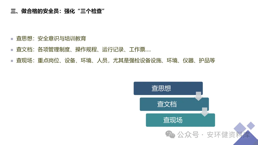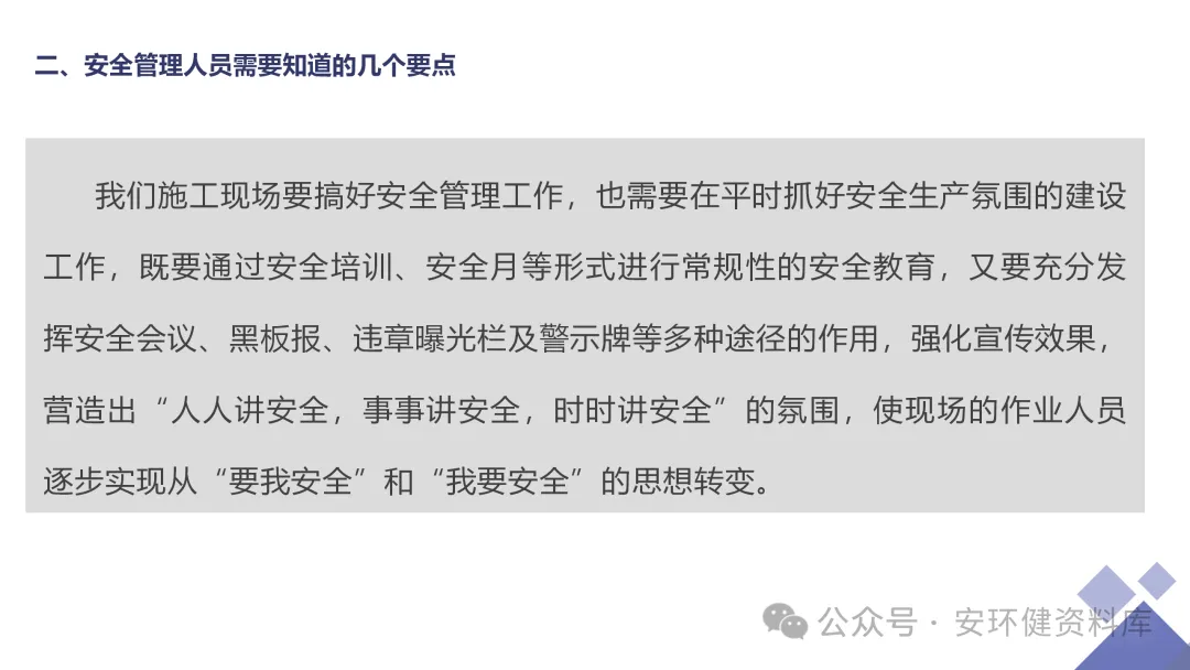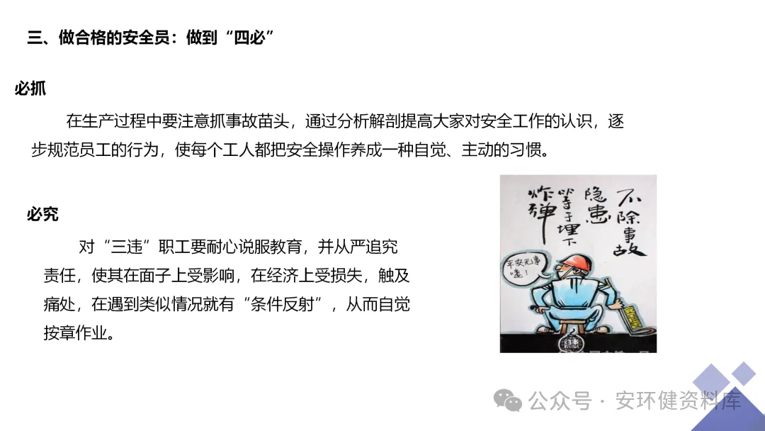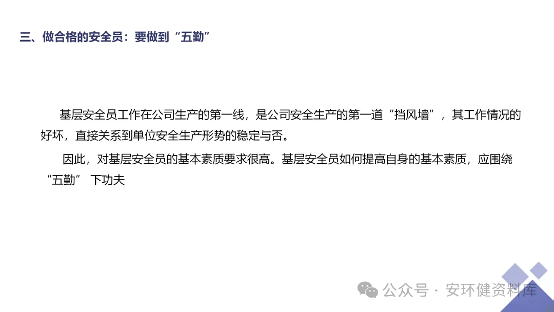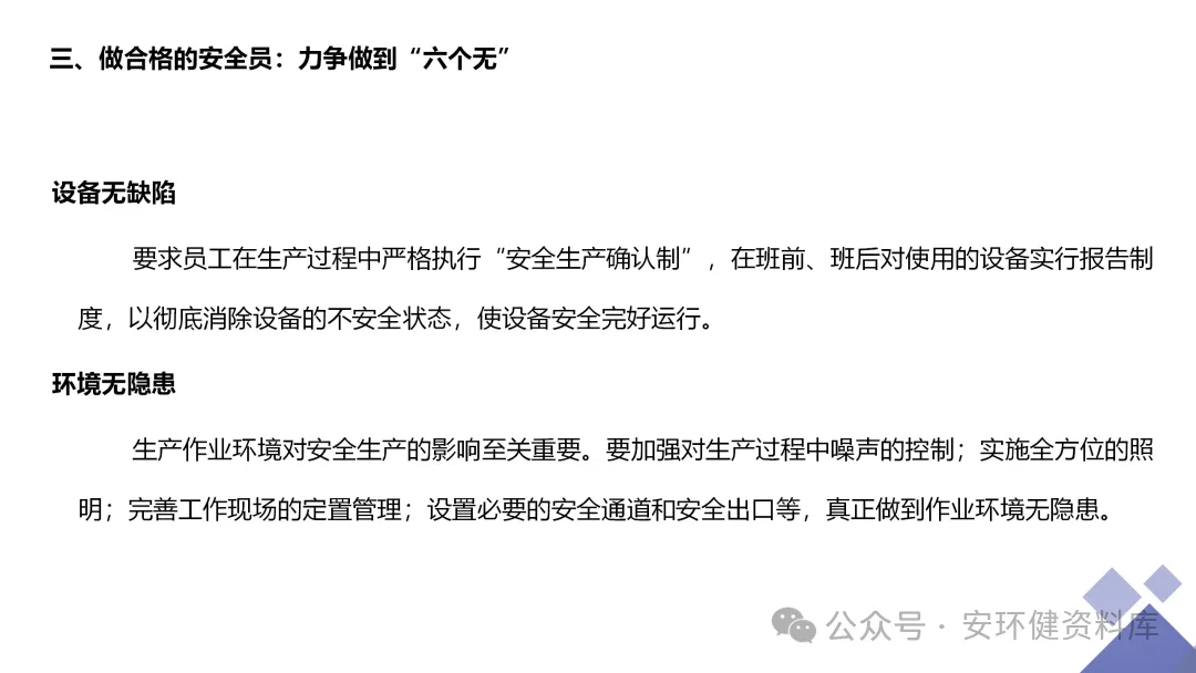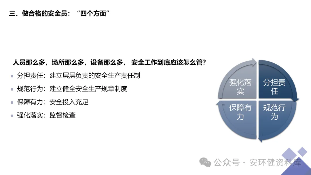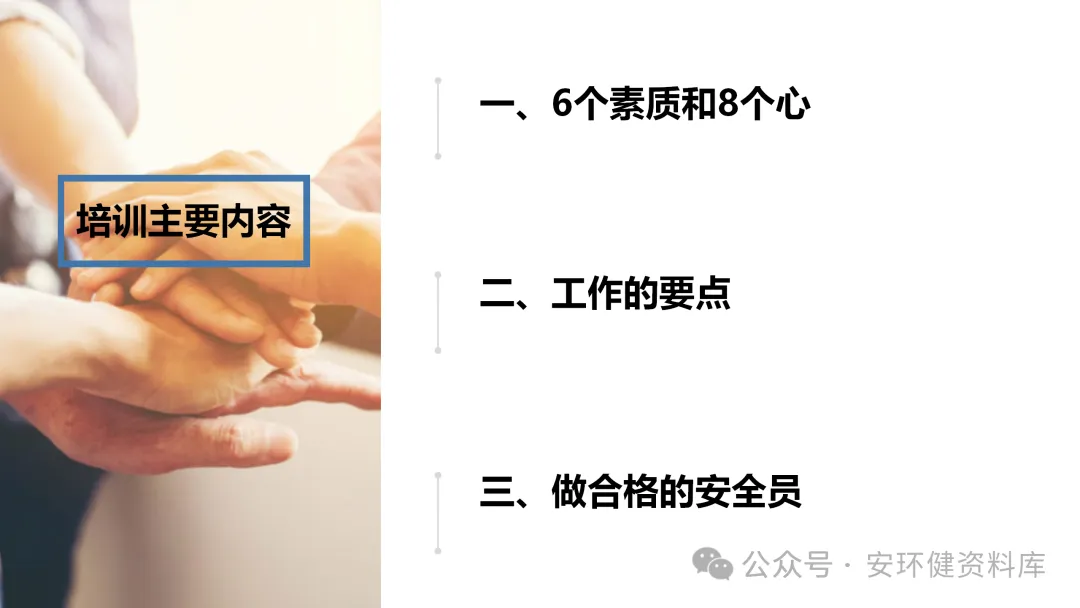 安全员必备技能丨62页.pptx 安全人必备的安全资料库 安环健资料库,海量EHS资料,不只有标准化、双体系、各行业隐患标识清单、环境管理、职业健康管理、EHS培训题库、安全法律法规、各系列培训课件等多方面EHS系列文件,我们不会上传垃圾文件凑数,你如果您需要百度文库,请您选择别的平台!因为,EHS老站必出精品,所有资料,无限制下载,持续更新!让你的资料获取更便捷,学习更简单。已有16000+安全同行加入!(小编微信交流:anhuanjia01) 长按/点击下图预览目录即可加入 “阅读全文”获取海量EHS资料