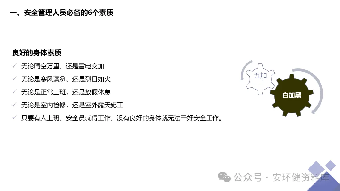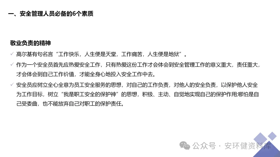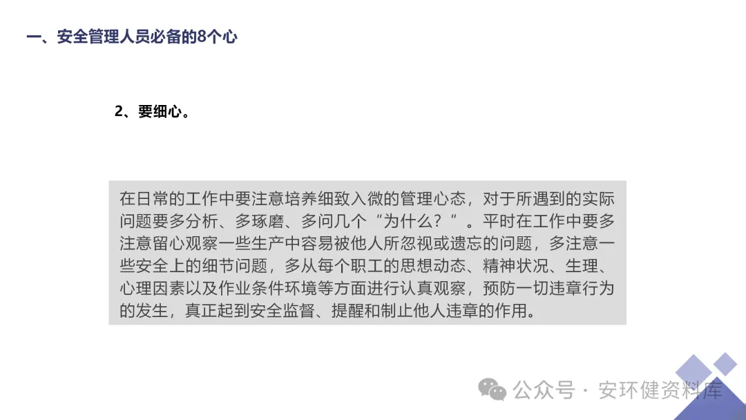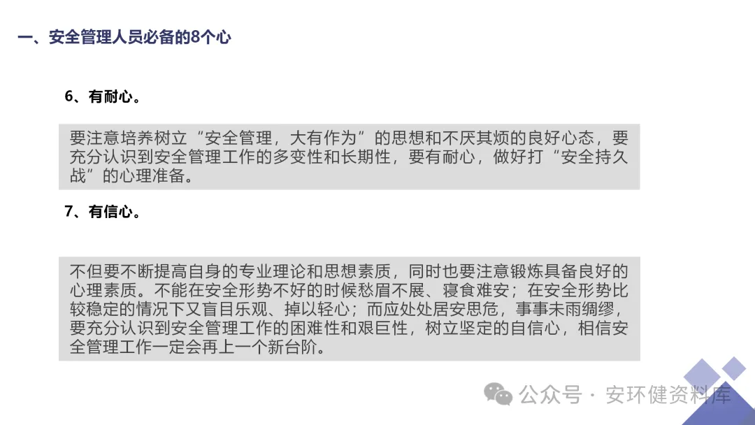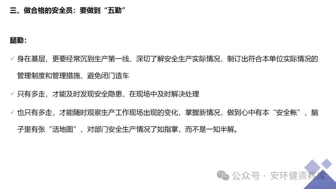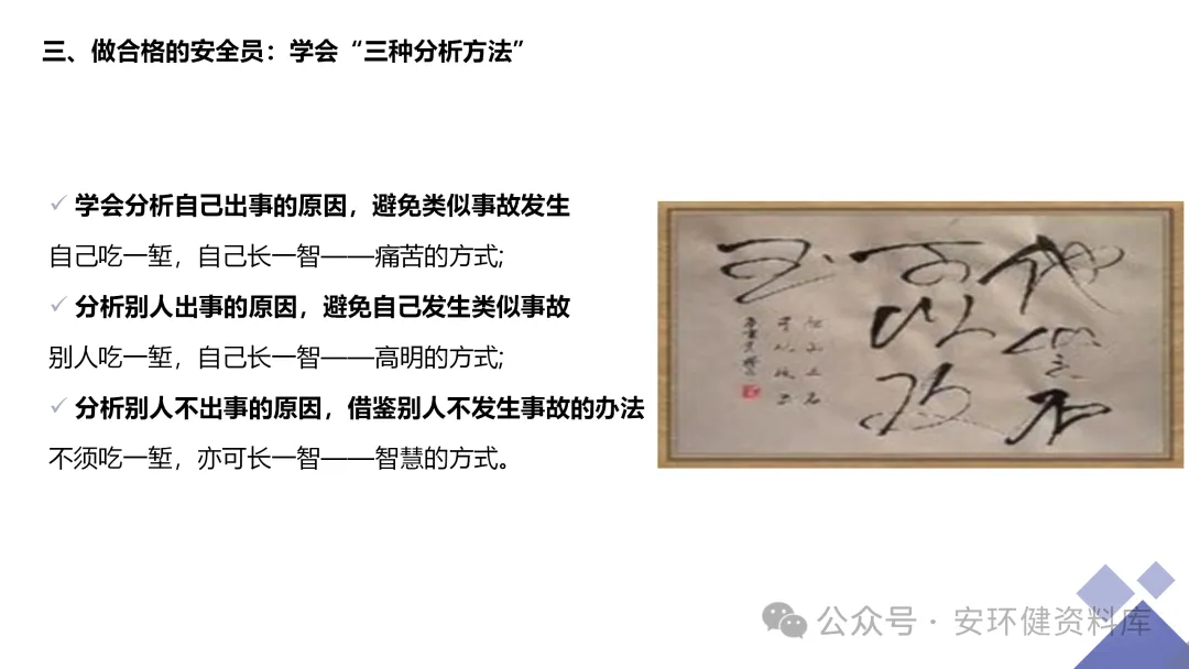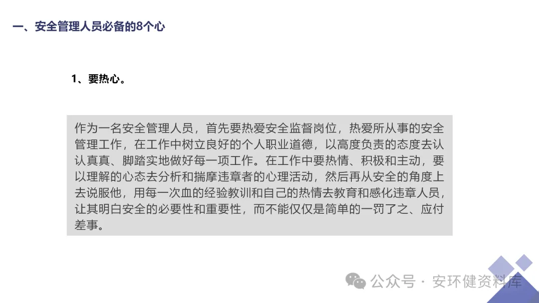 安全员必备技能丨62页.pptx 安全人必备的安全资料库 安环健资料库,海量EHS资料,不只有标准化、双体系、各行业隐患标识清单、环境管理、职业健康管理、EHS培训题库、安全法律法规、各系列培训课件等多方面EHS系列文件,我们不会上传垃圾文件凑数,你如果您需要百度文库,请您选择别的平台!因为,EHS老站必出精品,所有资料,无限制下载,持续更新!让你的资料获取更便捷,学习更简单。已有16000+安全同行加入!(小编微信交流:anhuanjia01) 长按/点击下图预览目录即可加入 “阅读全文”获取海量EHS资料
