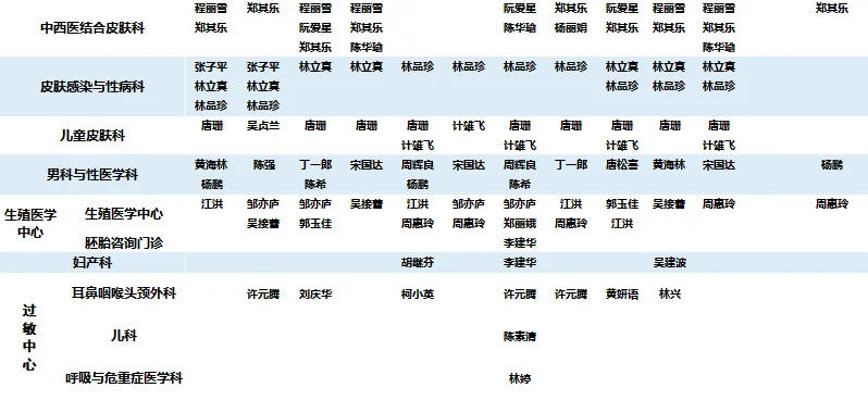 皮肤科、皮肤外科、中西医结合皮肤科、儿童皮肤科、皮肤感染与性病科、生殖医学中心、男科与性病医学科及妇科