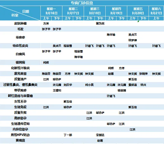 挂号必备!福建医科大学附属第一医院奥体院区3月16日-3月22日专家门诊一览