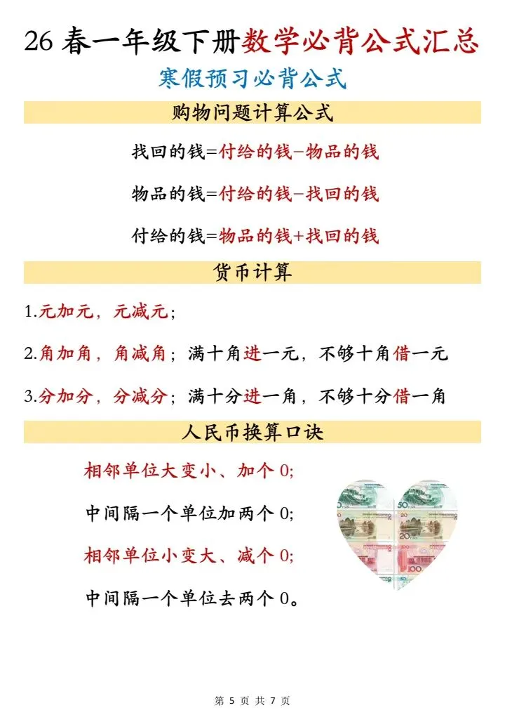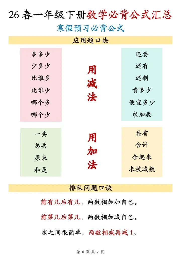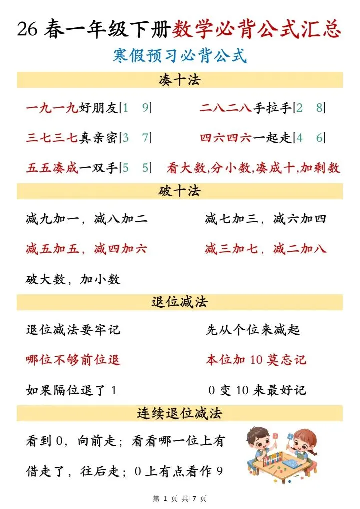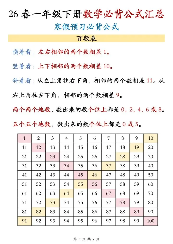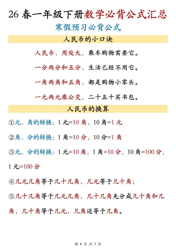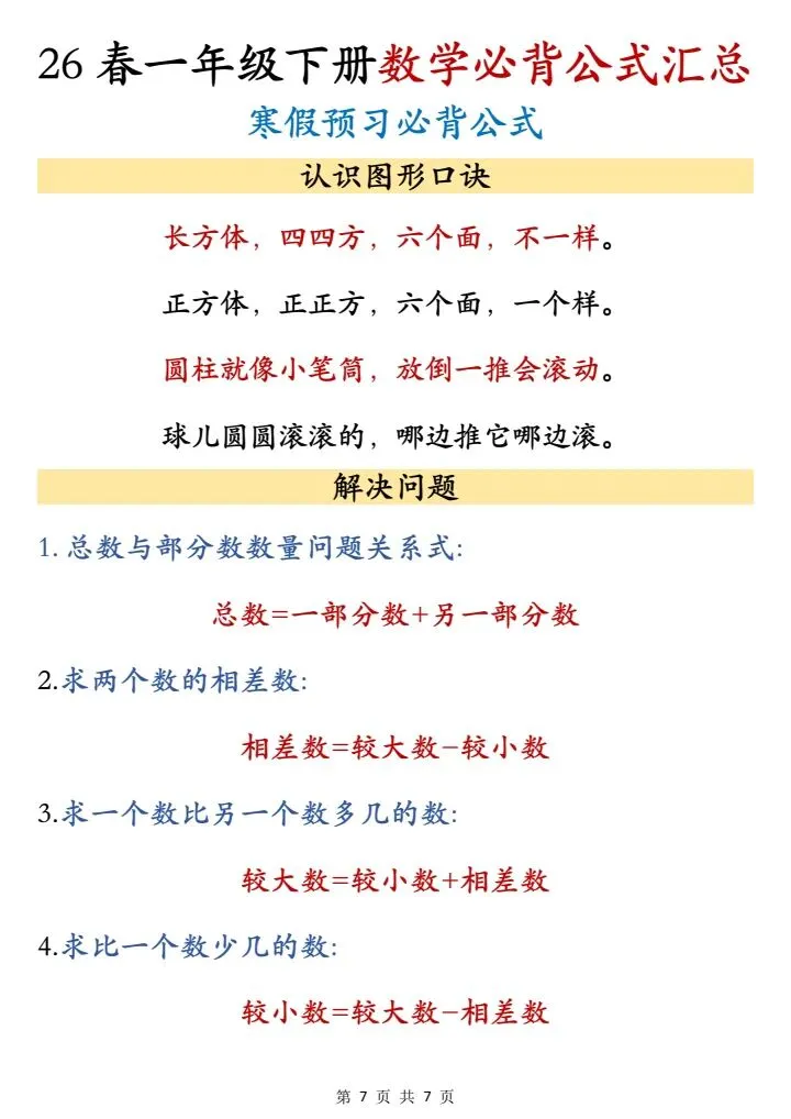 26春一年级下册数学必背公式汇总