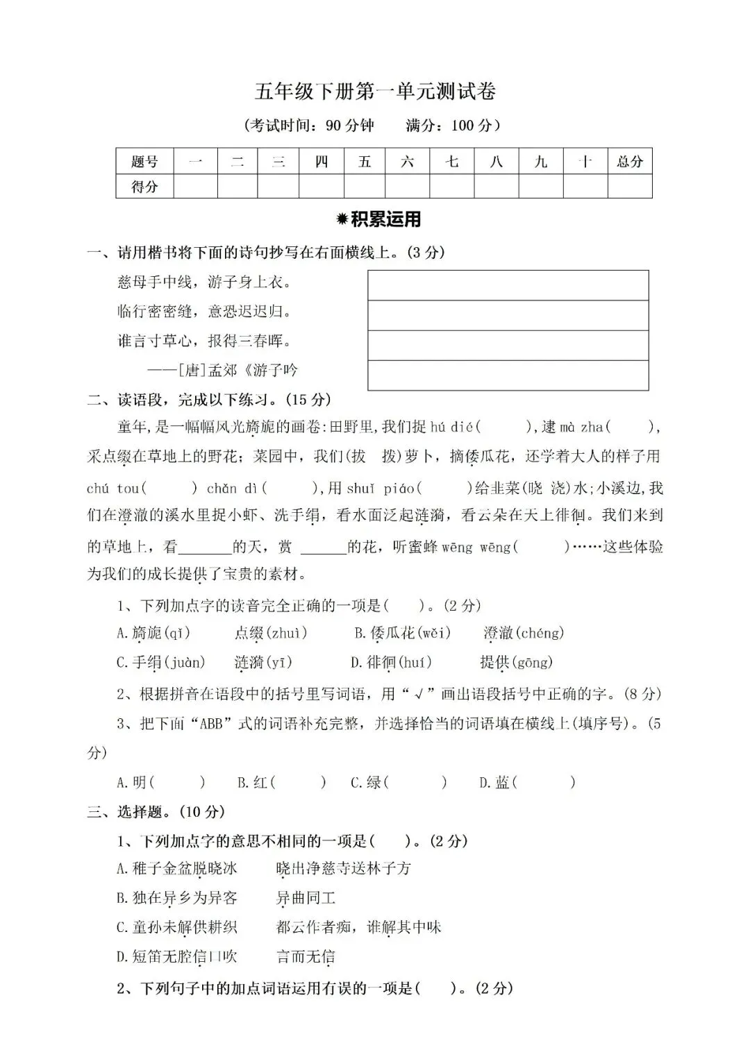 2026学年五年级下册第一单元测试卷(免费下载) 温馨提示:点击文末阅读原文可下载 声明:素材来源网络,本文意在交流学习,普及知识,如涉及版权等问题,请及时与我们联系。 领取方式 点击下方信息后 发送消息“单元测试”即可领取 领取电子版请戳这里~