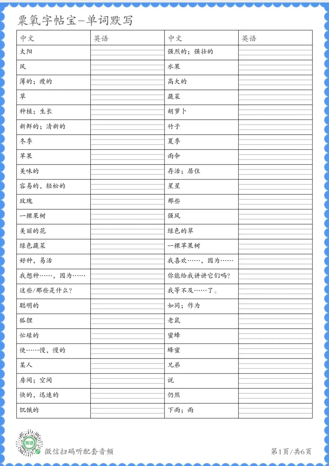 新学期必备!广州版1-6年级下册英语单词默写表,替孩子打印一份,复习预习都用得上!