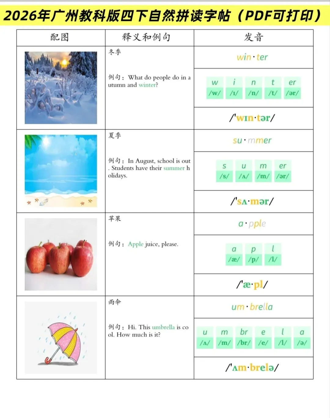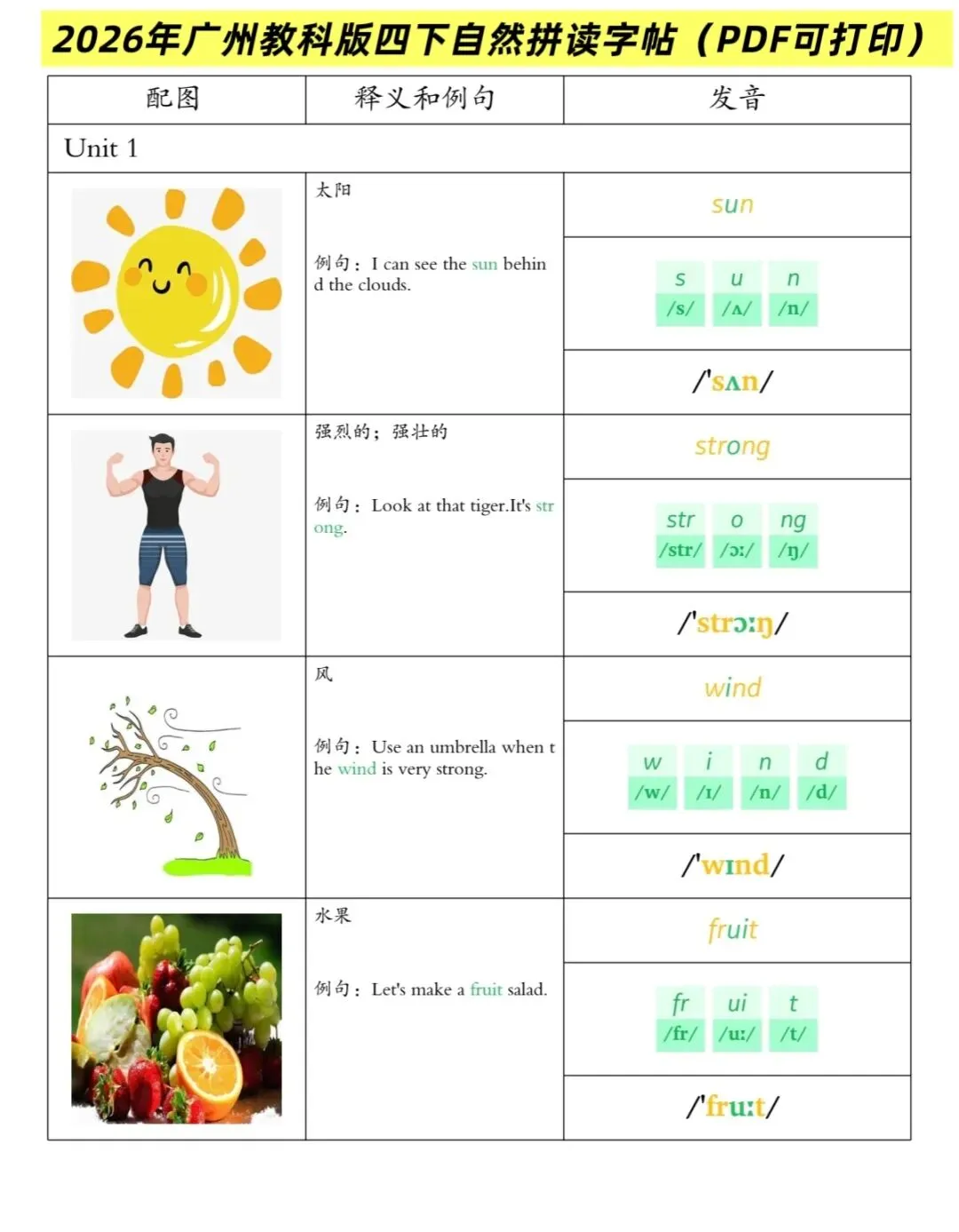✅1-8单元超全自然拼读单词表