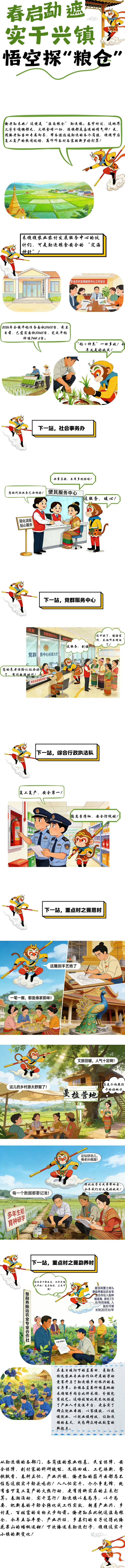 【漫画】春启勐遮实干兴镇 悟空探“粮仓” 来源:勐海县勐遮镇党委 马勋艳 和敏 编辑:白歆 章蝶 投稿邮箱:zwzzbxwb311@126.com 西双版纳先锋|一个直通基层的公众号 主办:中共西双版纳州委组织部