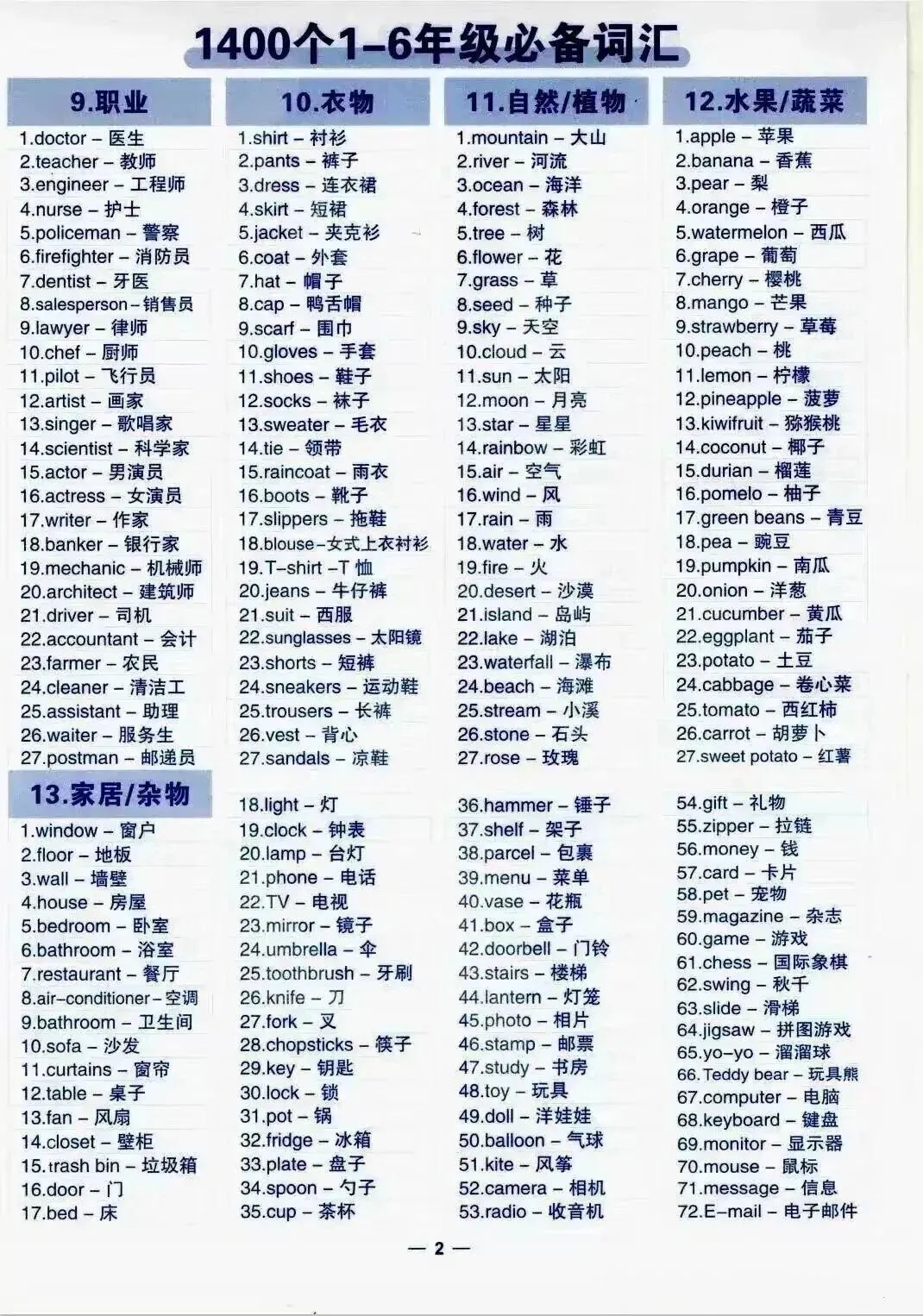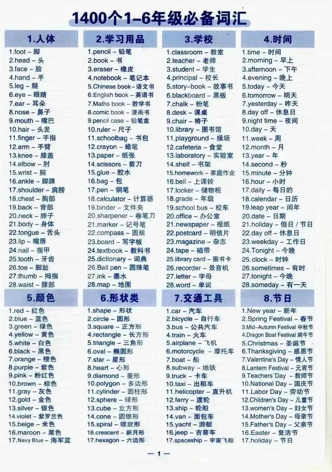 小学英语必备1400词全套资料+记忆神器