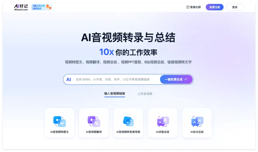 结果同事推荐了一个AI工具,能一键把音视频转文字变成结构化学习笔记。我试了几次,直接惊呆!它的页面长这样: