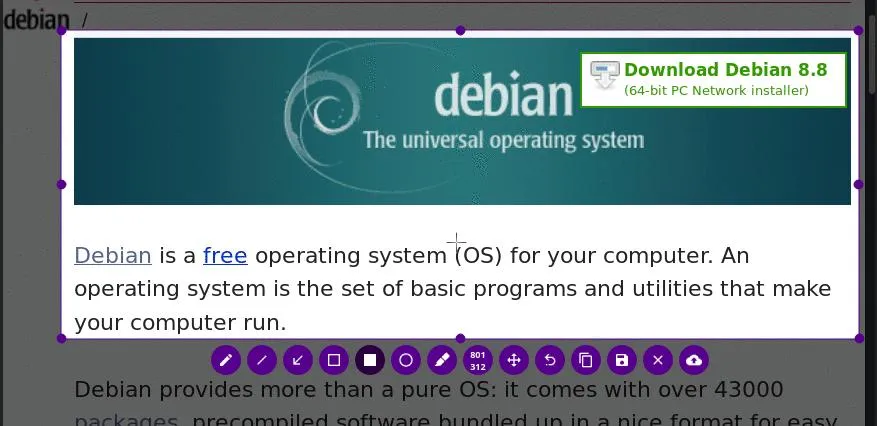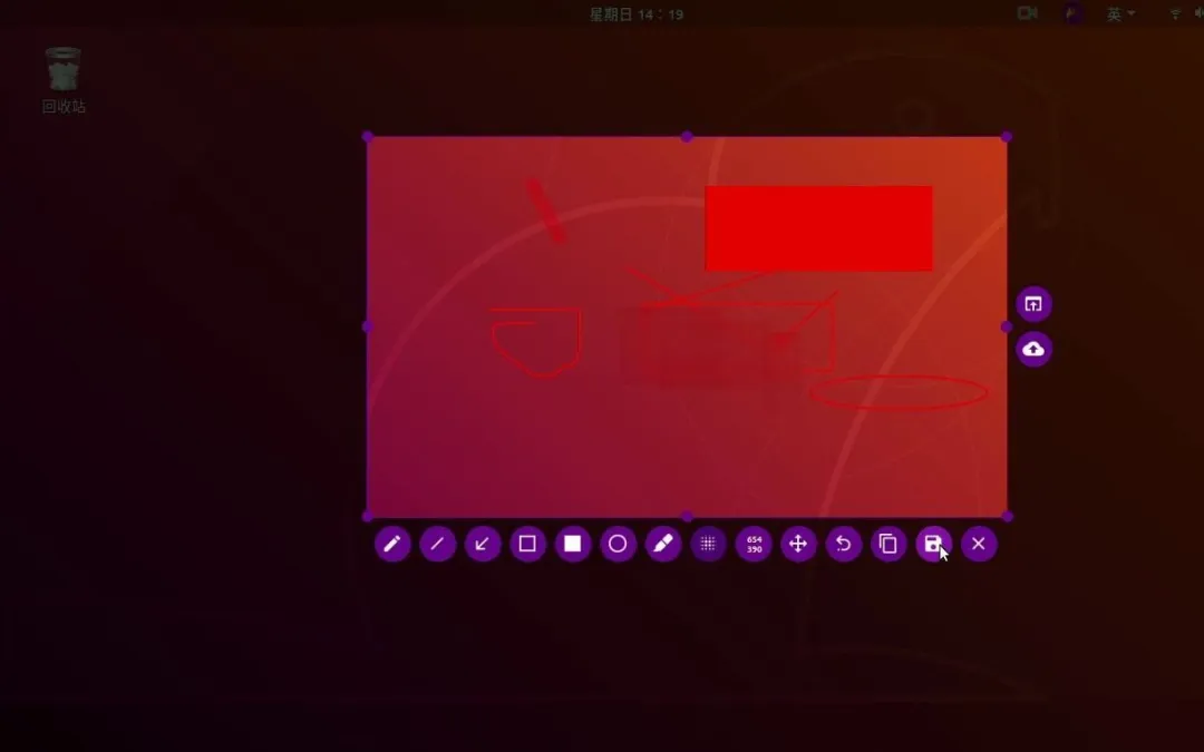 按下你设置的快捷键,鼠标会变成十字形,拖动选择要截图的区域。松开鼠标后,你会发现右侧出现了一排功能按钮——这就是Flameshot的核心。