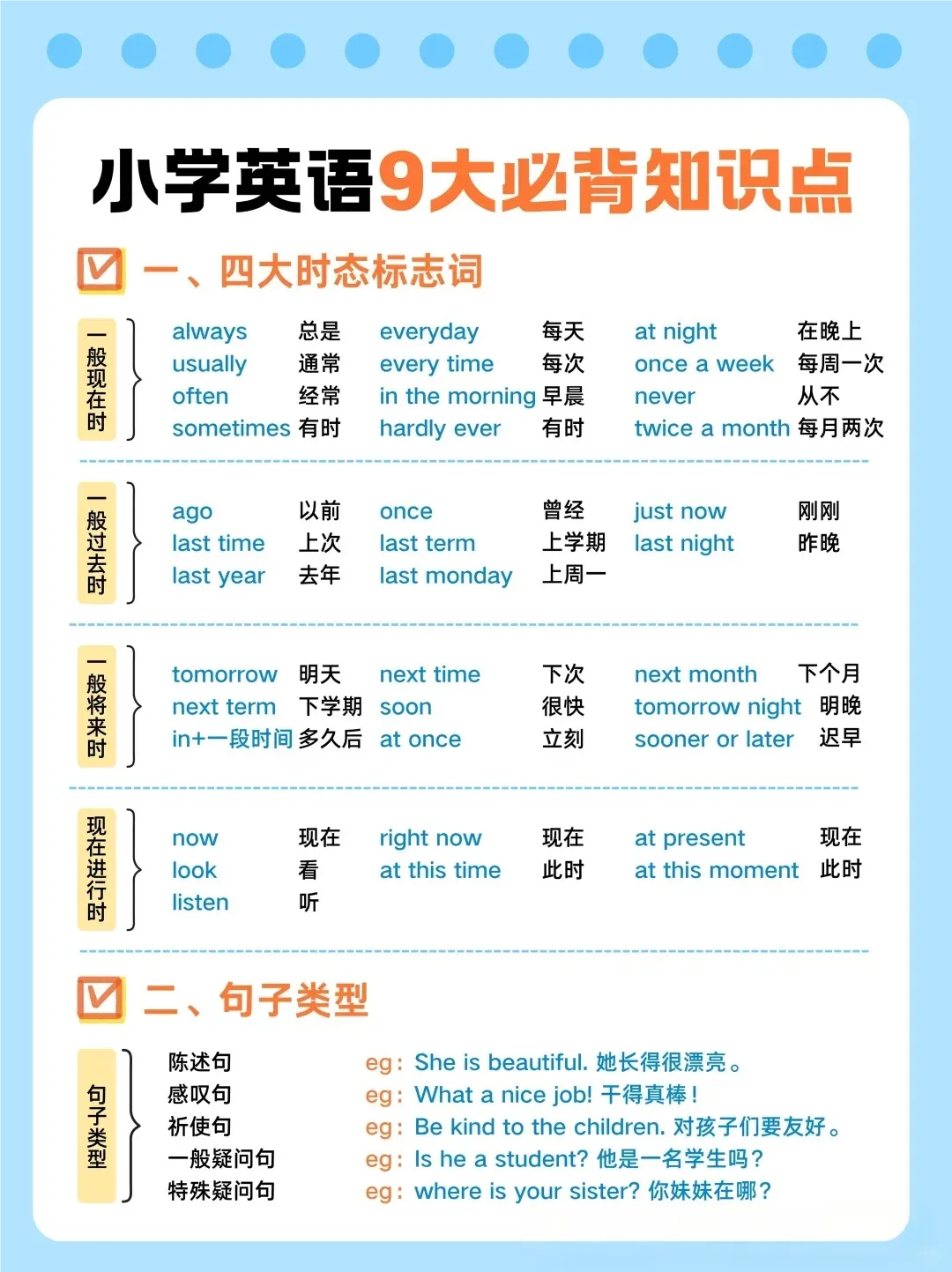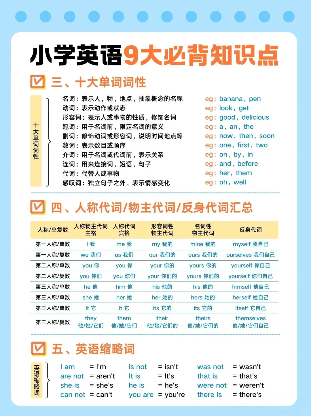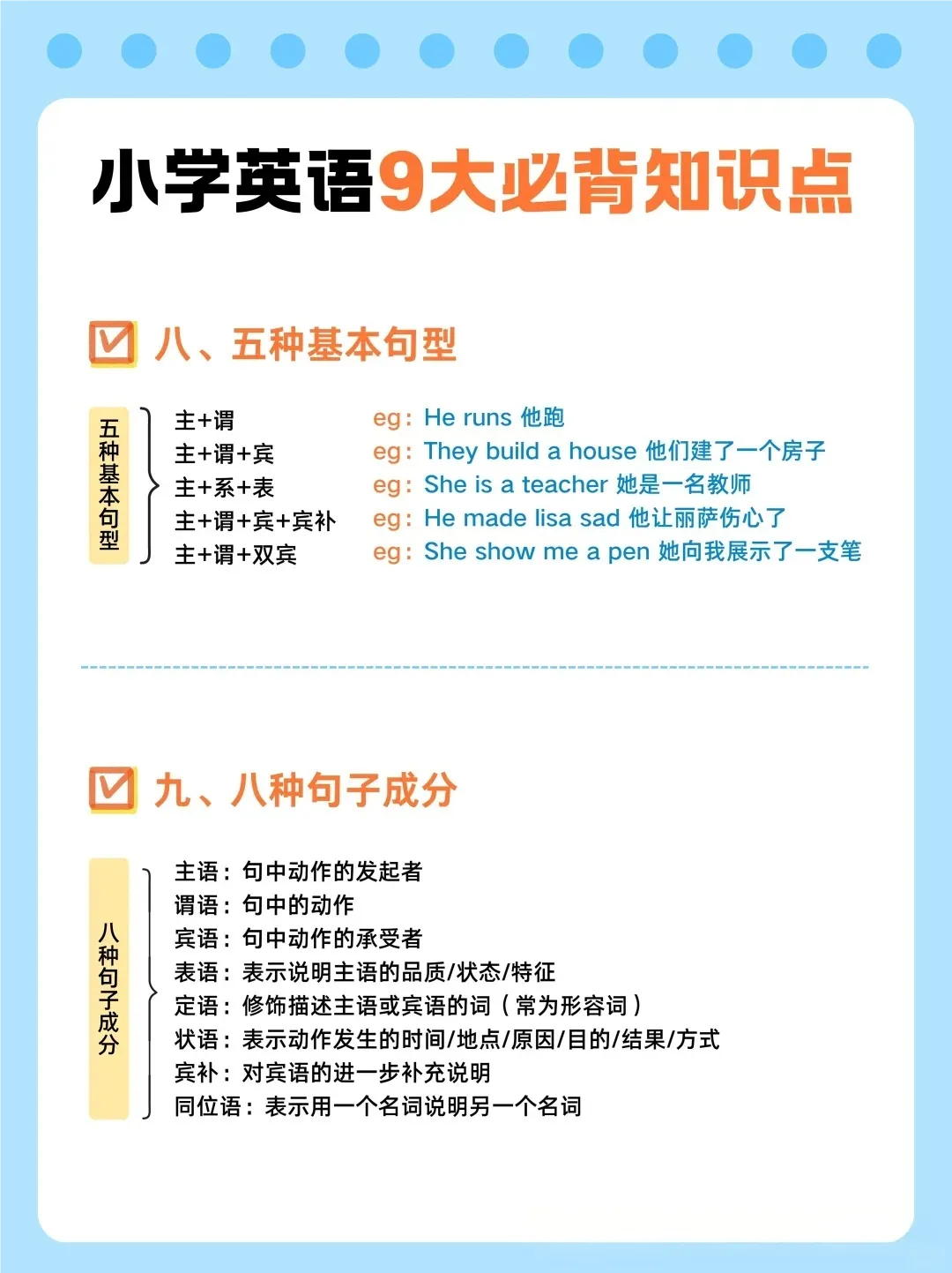 小博老师今天用心整理了小学英语必备知识点和练习题分享给大家,欢迎转发收藏~