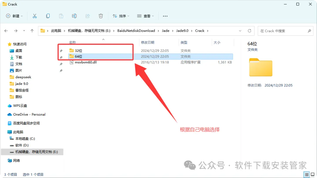 2.打开解压后的文件夹,双击打开【Crack】文件夹,根据电脑系统位数选择打开对应文件夹