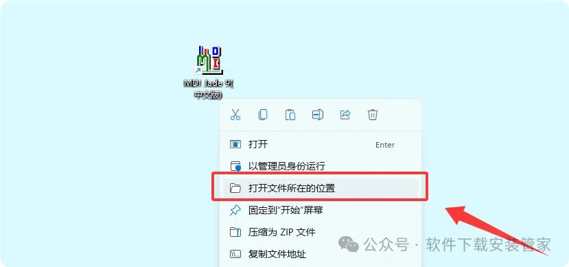 17.鼠标右键桌面【MDI Jade9 中文版】图标,选择【打开文件所在的位置】