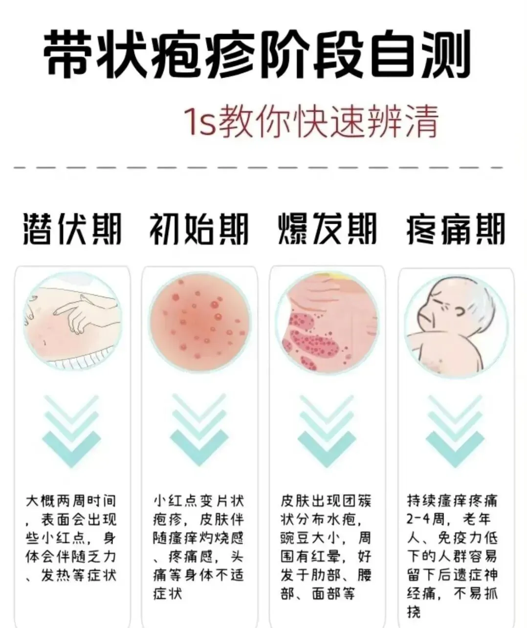 疱疹的前身其实是水痘。病源潜伏在身体里,免疫力下降,就被激活了。沿着神经扩散,出现了疱疹和神经痛的表现。