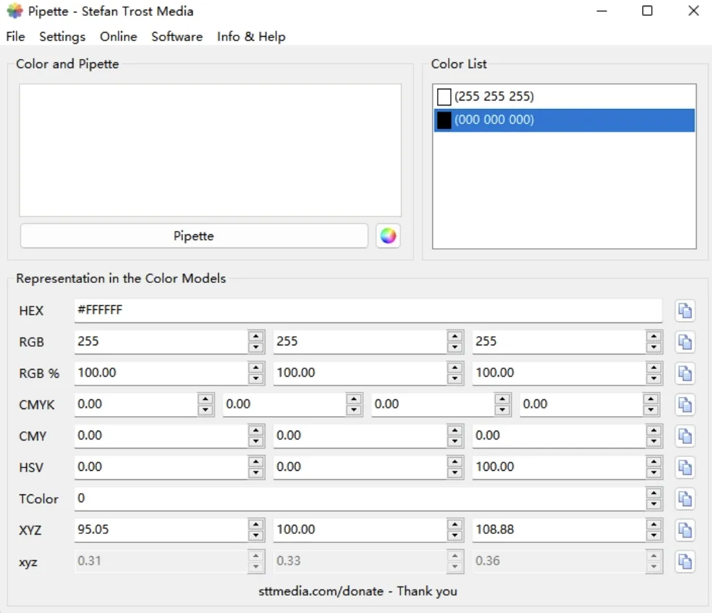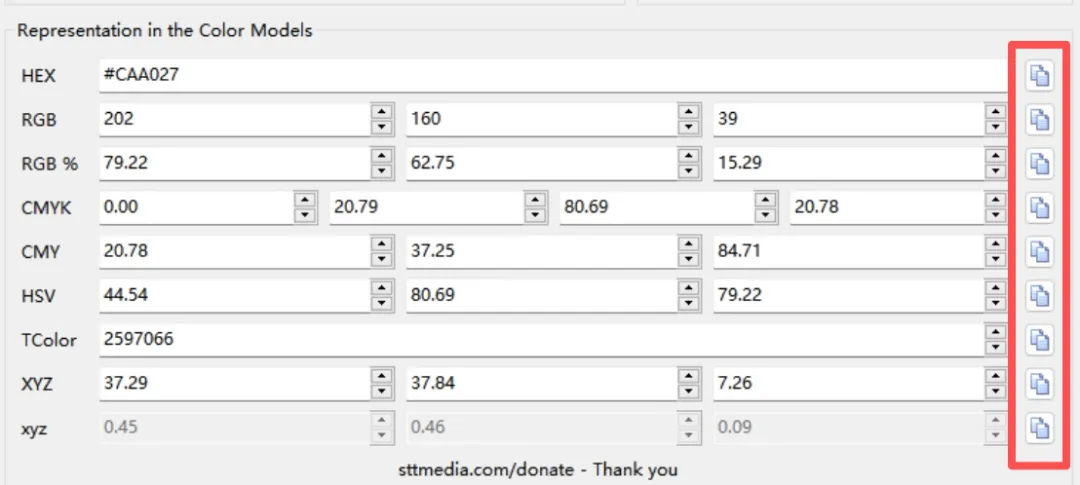 多格式输出:可直接显示 RGB、HEX、HSV 等多种常用颜色格式,无需手动转换; -