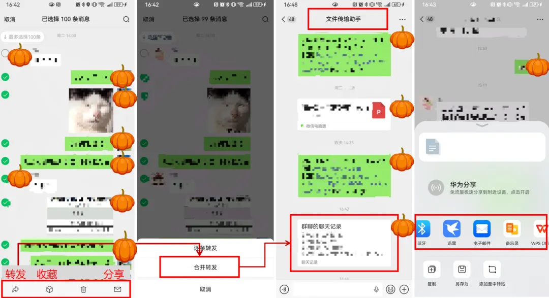 勾选需要导出的所有消息(可跨屏选择),点击底部「合并转发」;