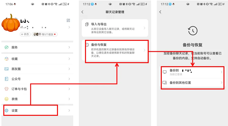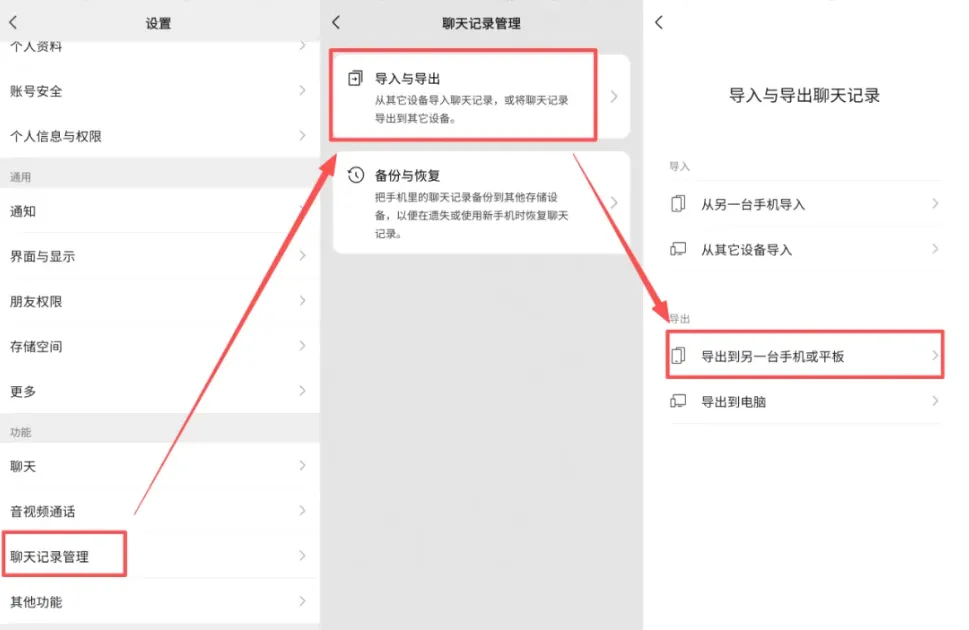 备份完成后,可在新手机登录微信,通过「迁移到另一台设备」同步记录,再导出为文档。