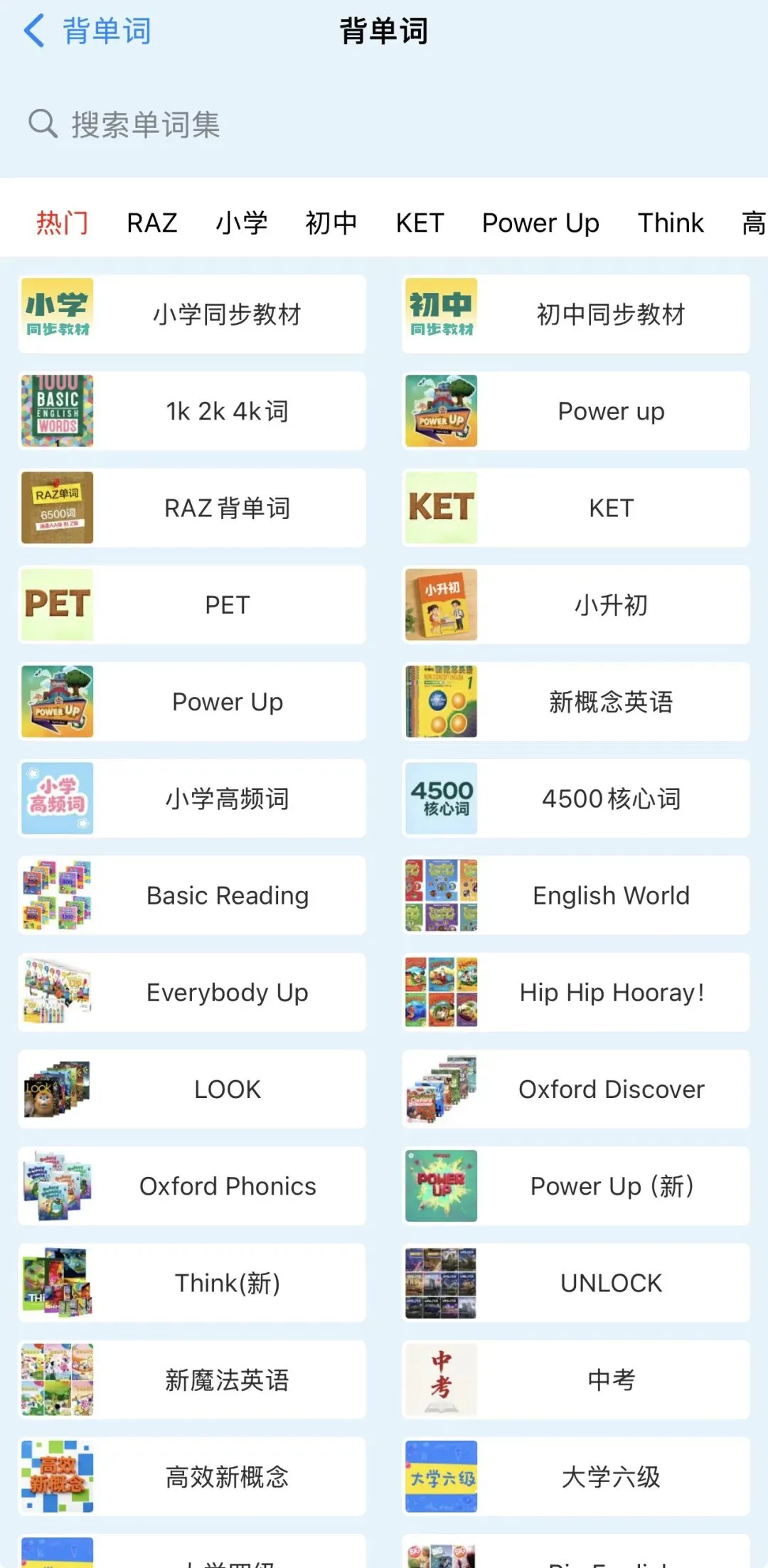 【教材配套单词】模块太适合小学生和初中生了,里面版本很多,可以切换当地英文教材版本,平时娃学完课本,同步在这个APP上面把配套单词练了,很方便。
