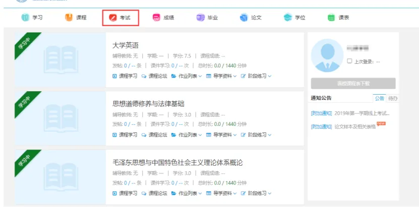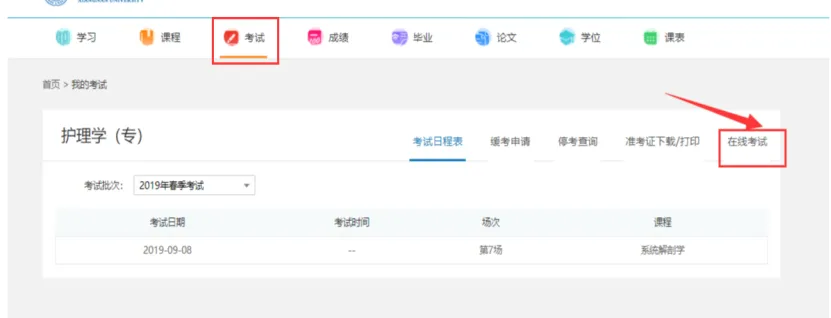 2、登录平台之后,找到【考试】菜单;