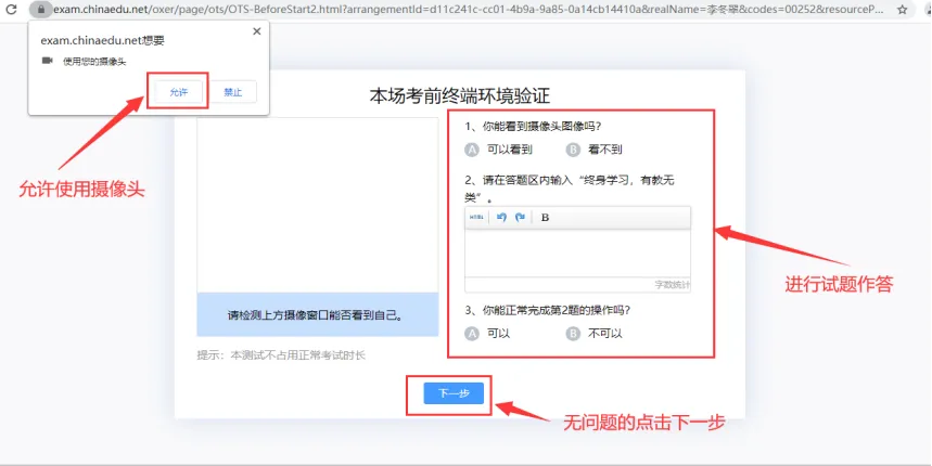 5、进入考试前需进行考试环境验证,根据提示进行操作;