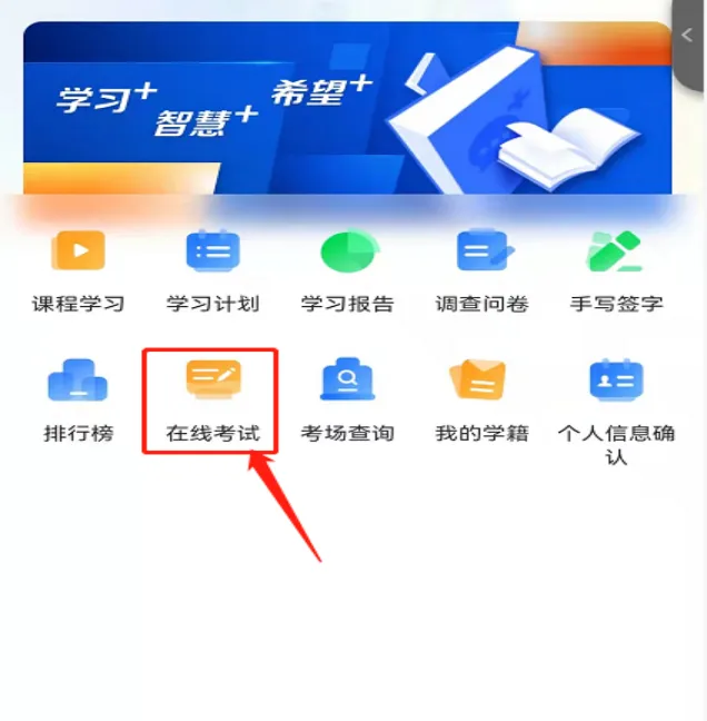 1、在手机端使用【学起PLUS】登录系统后,点击“在线考试”;