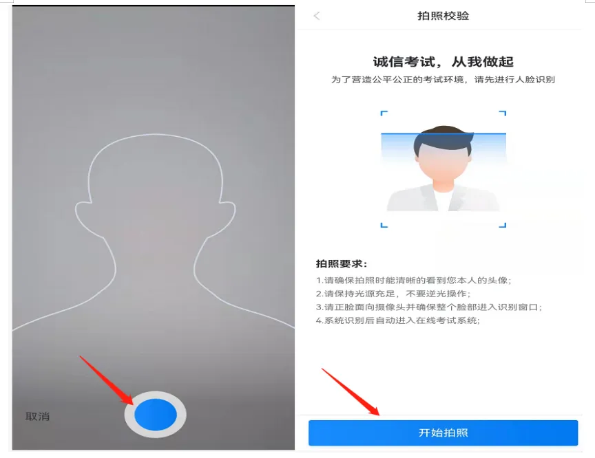 (3)、进入考试后,需要进行考前人脸识别验证;