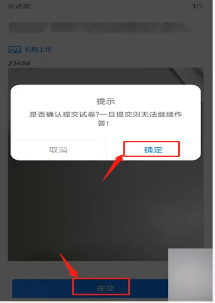 6、作答完成后,点击底部【提交】,并进行人脸识别拍照;