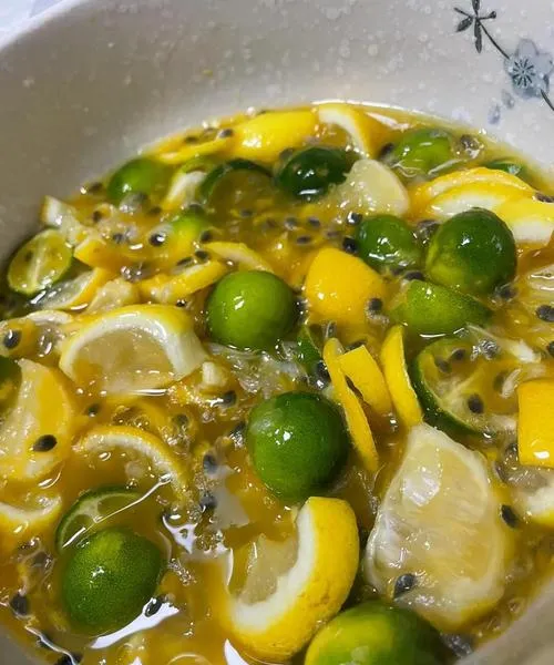 2、蜂蜜柠檬百香果腌青柠——比单纯美白更清爽的喝法
