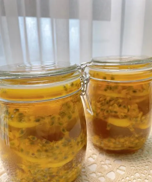 柠檬2个、百香果4-5个、蜂蜜适量、干净无油无水的玻璃罐1个