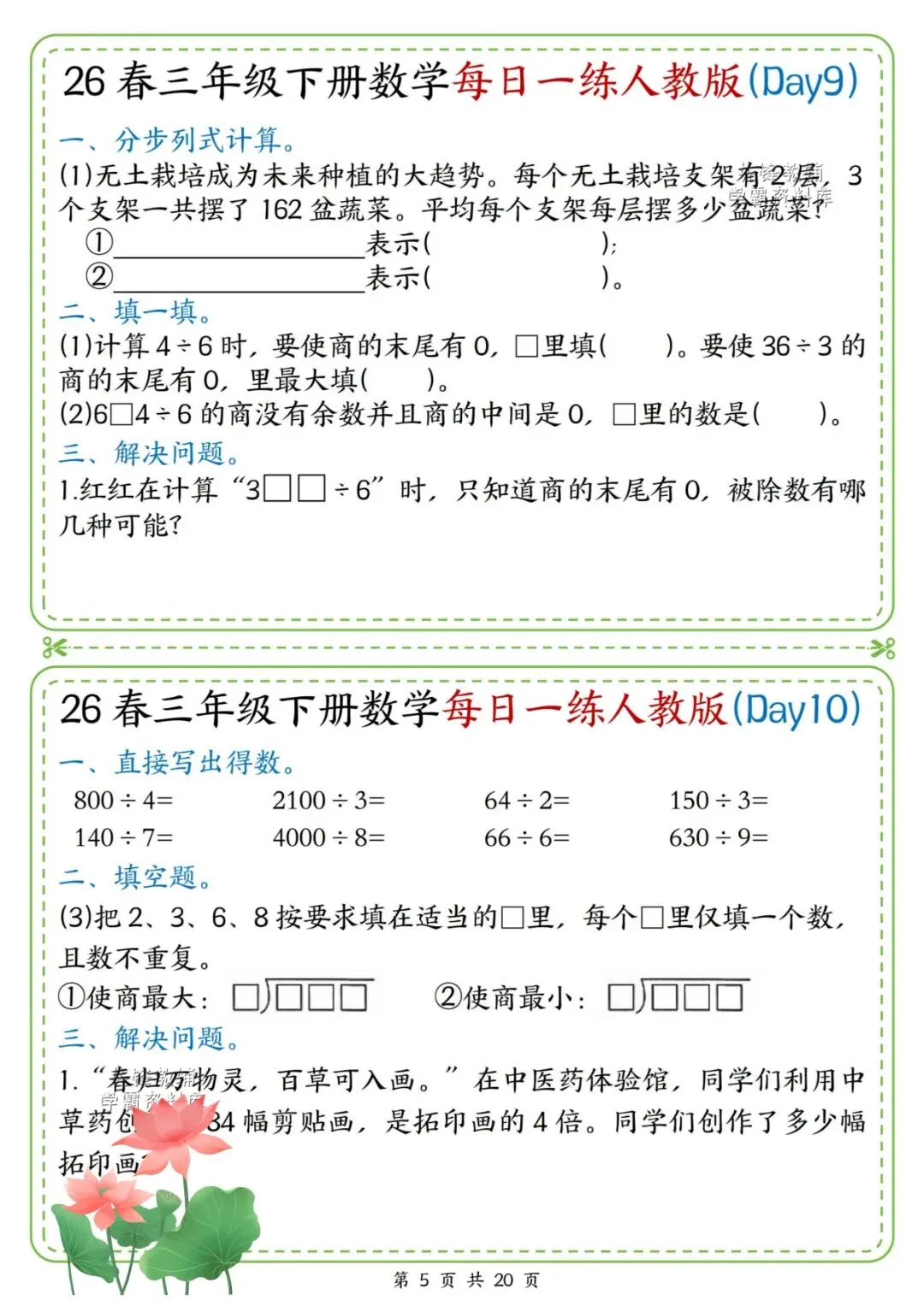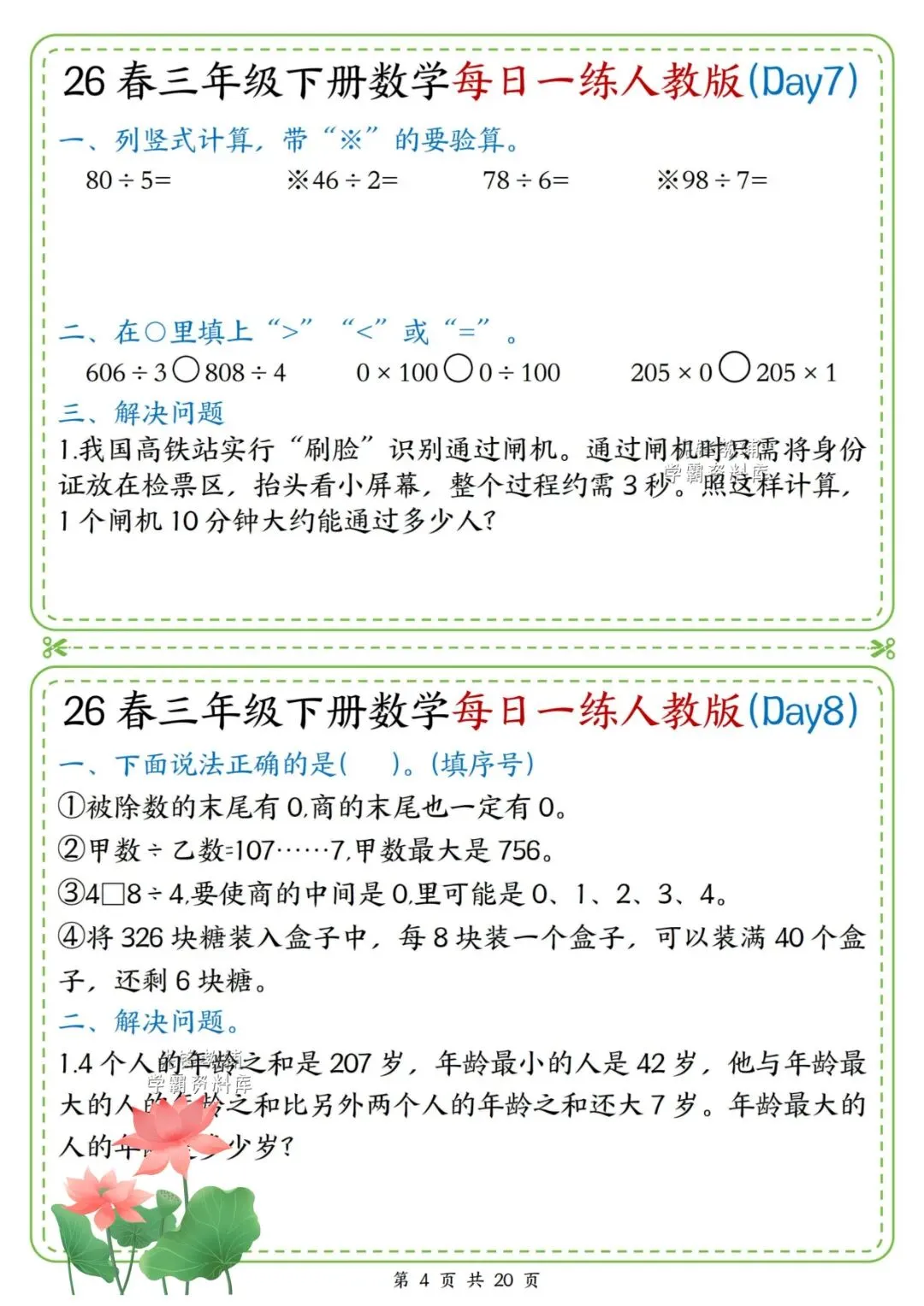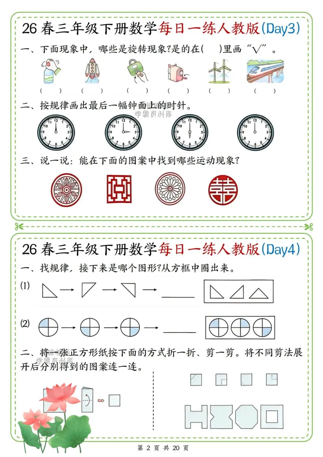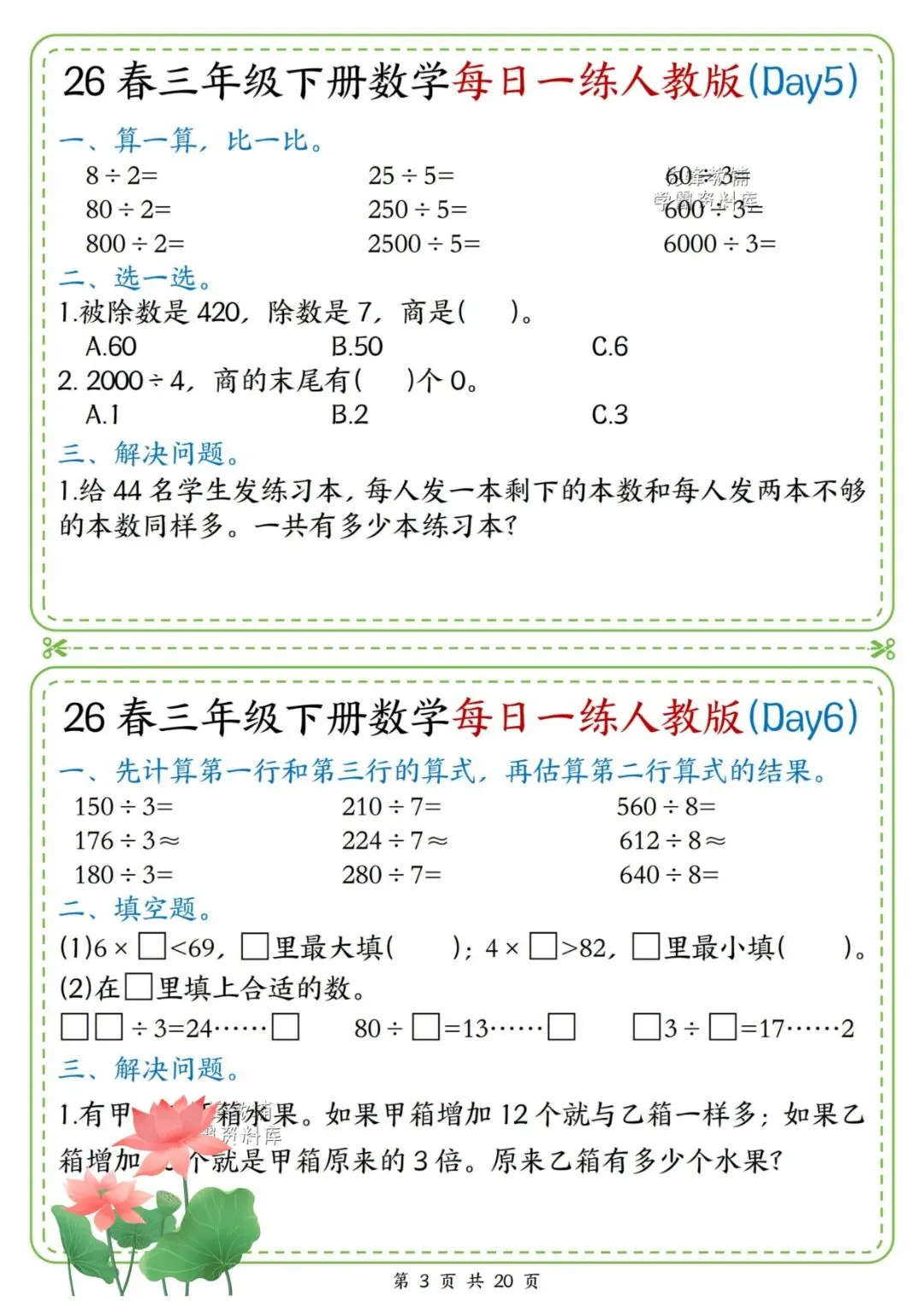 26春三年级下册数学每日一练,电子版可打印!