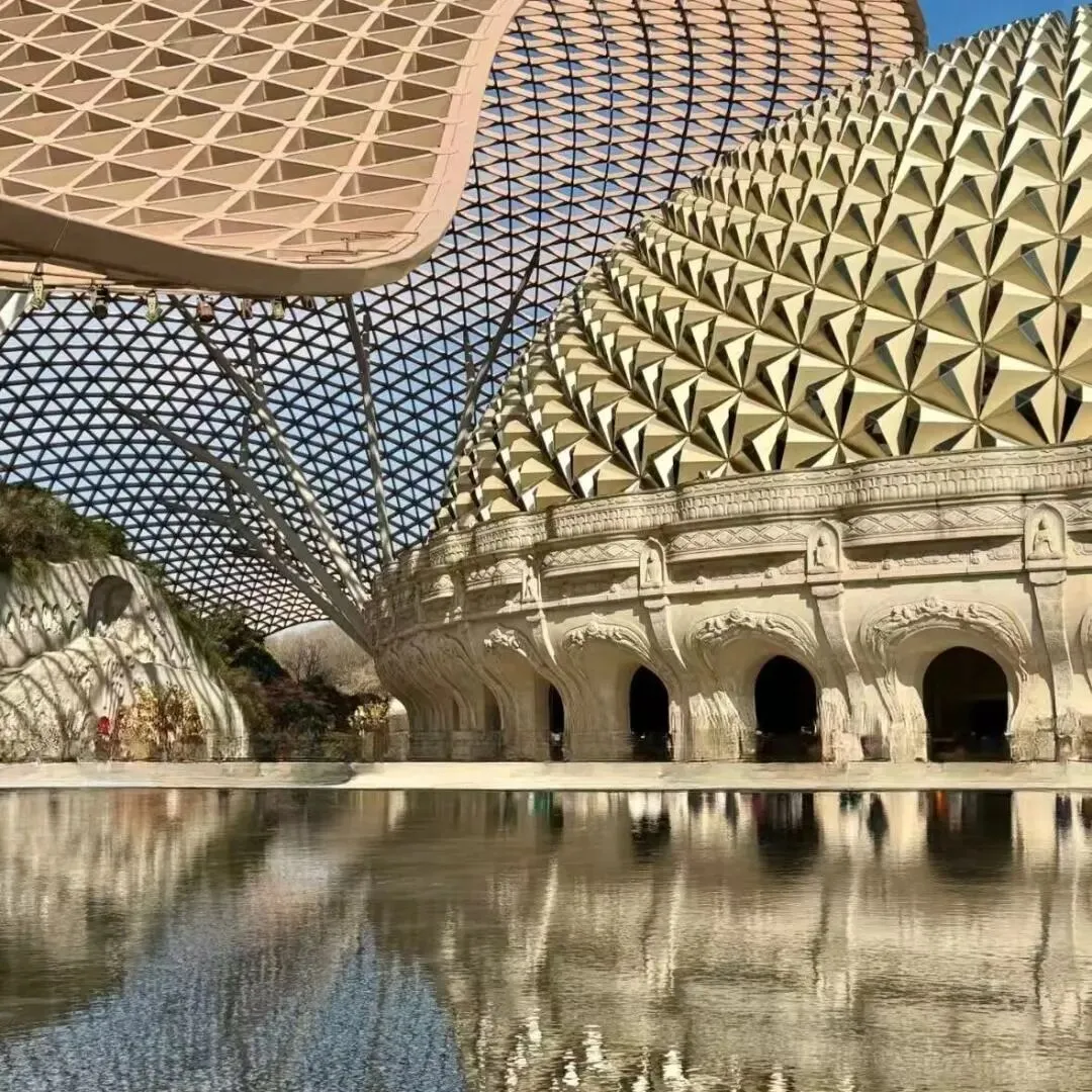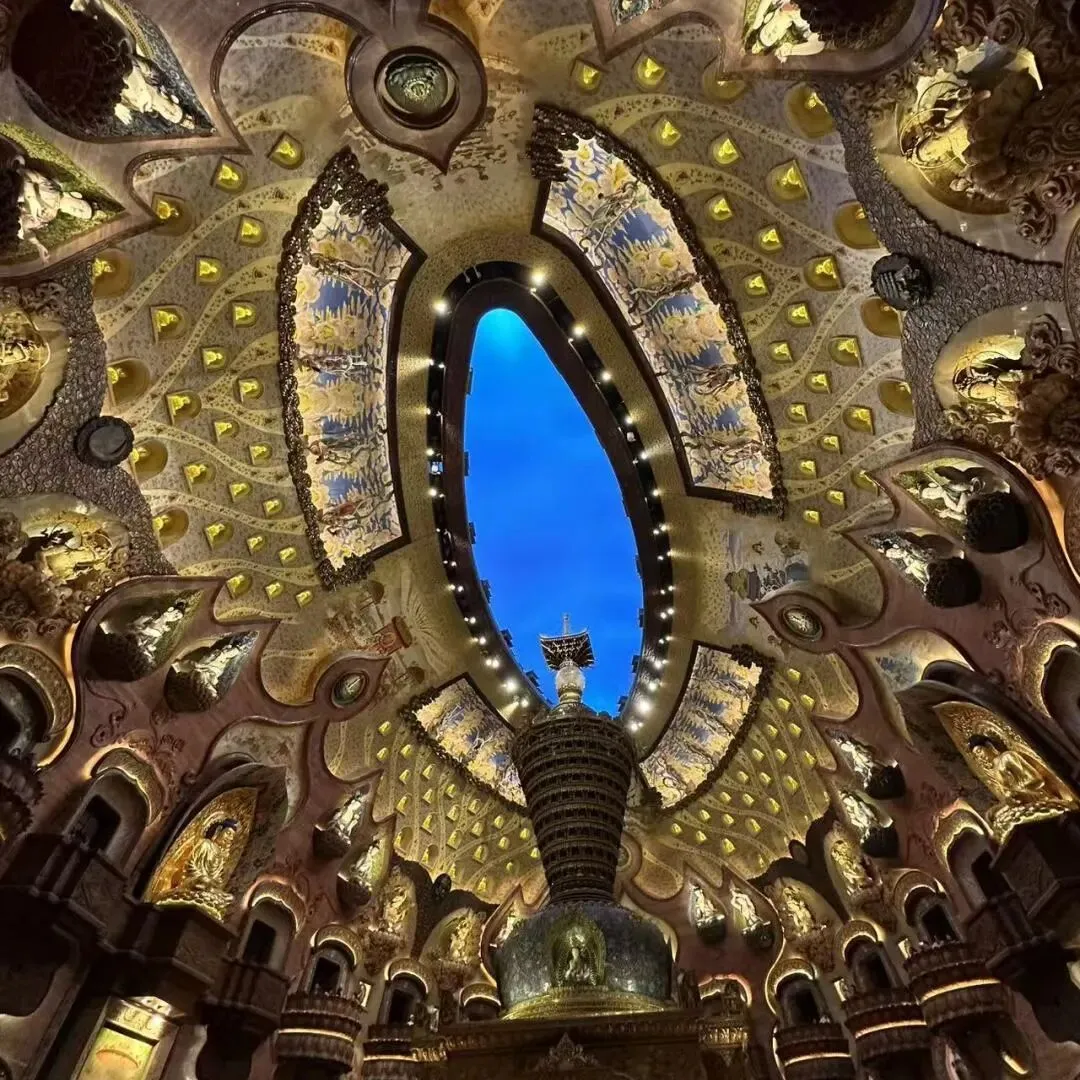 踏入佛顶宫,鎏金穹顶在眼前铺展,椭圆天窗漏下的天光,恰好落在舍利塔的尖顶。壁画上的飞天衣袂翩跹,佛音在耳畔轻绕,尘世的浮躁在此刻被悄然抚平。这一程,把庄严与宁静妥帖安放,让心灵在佛光里得到片刻栖息。