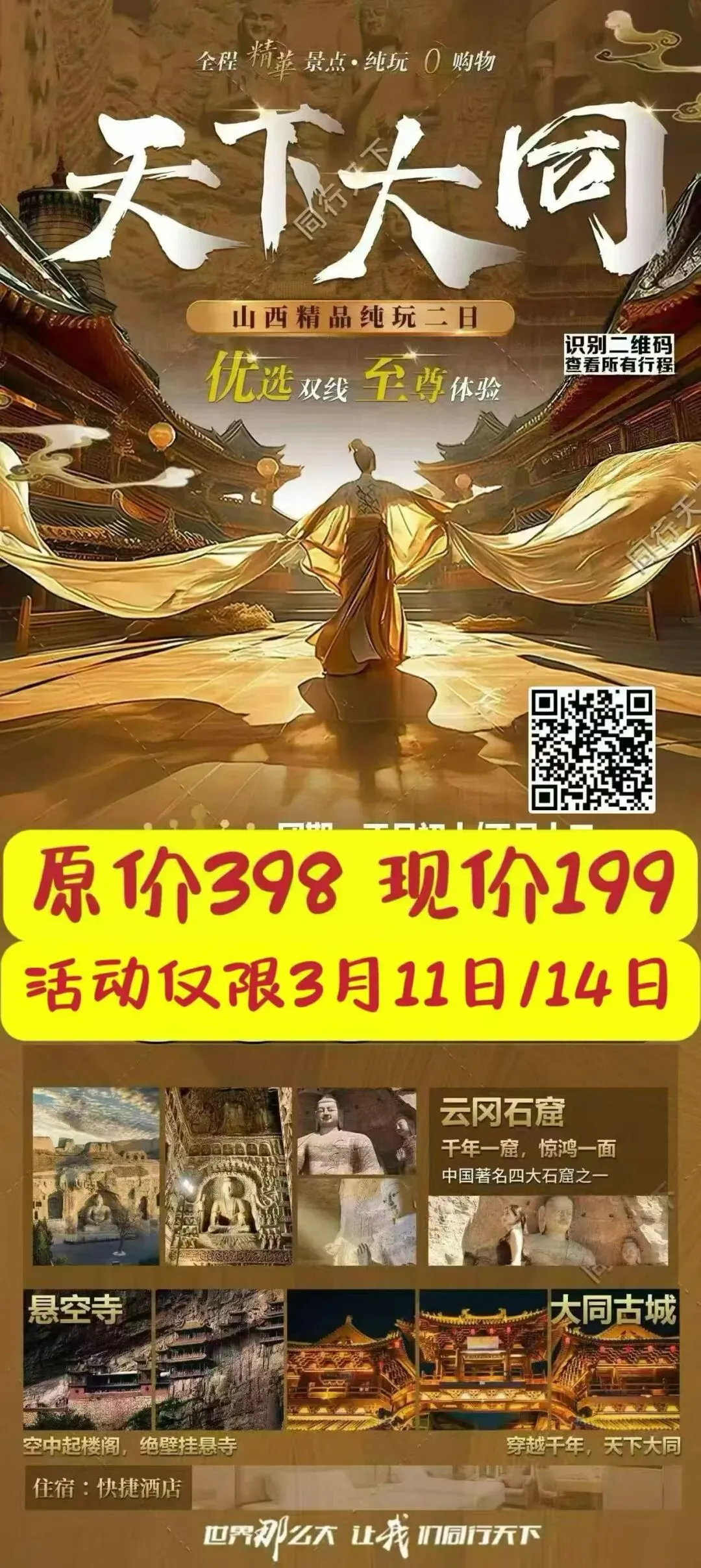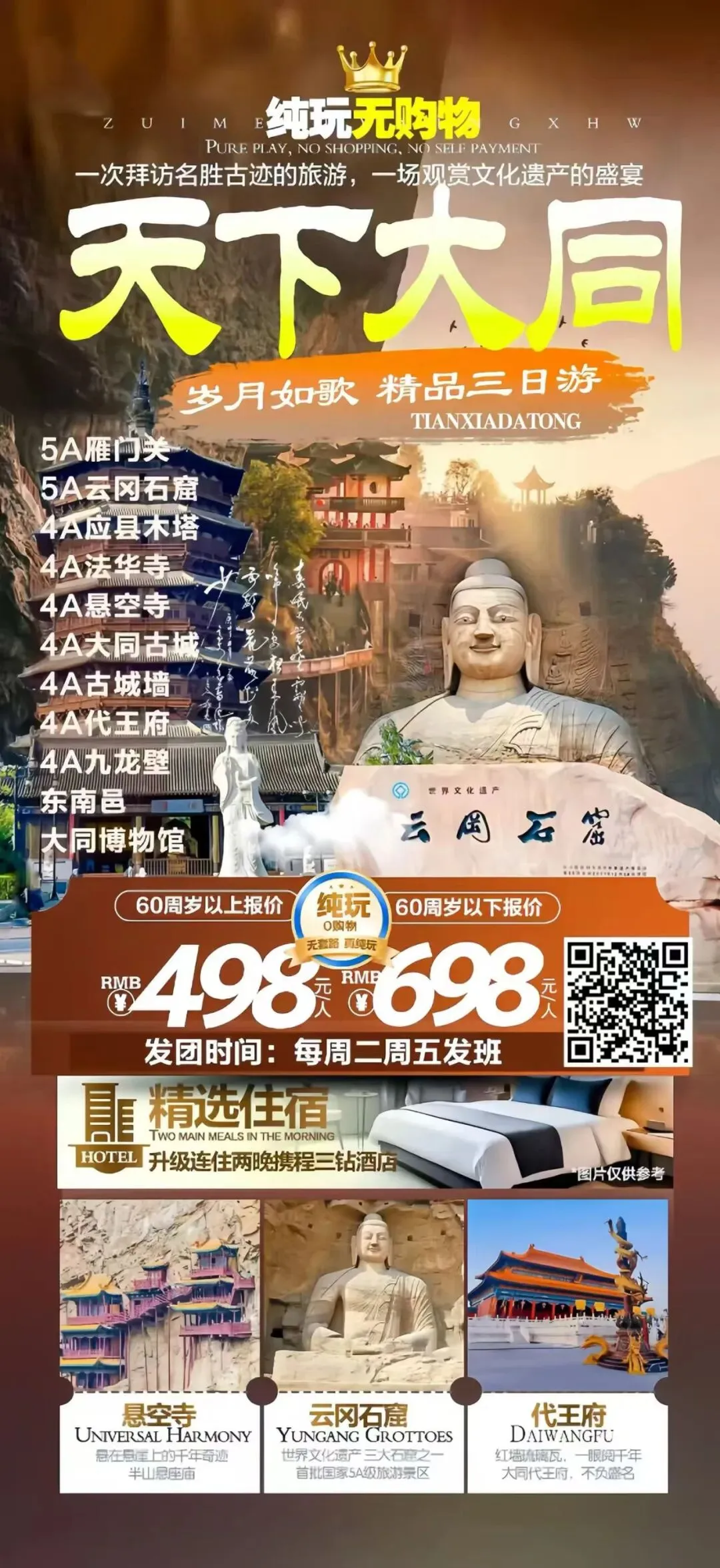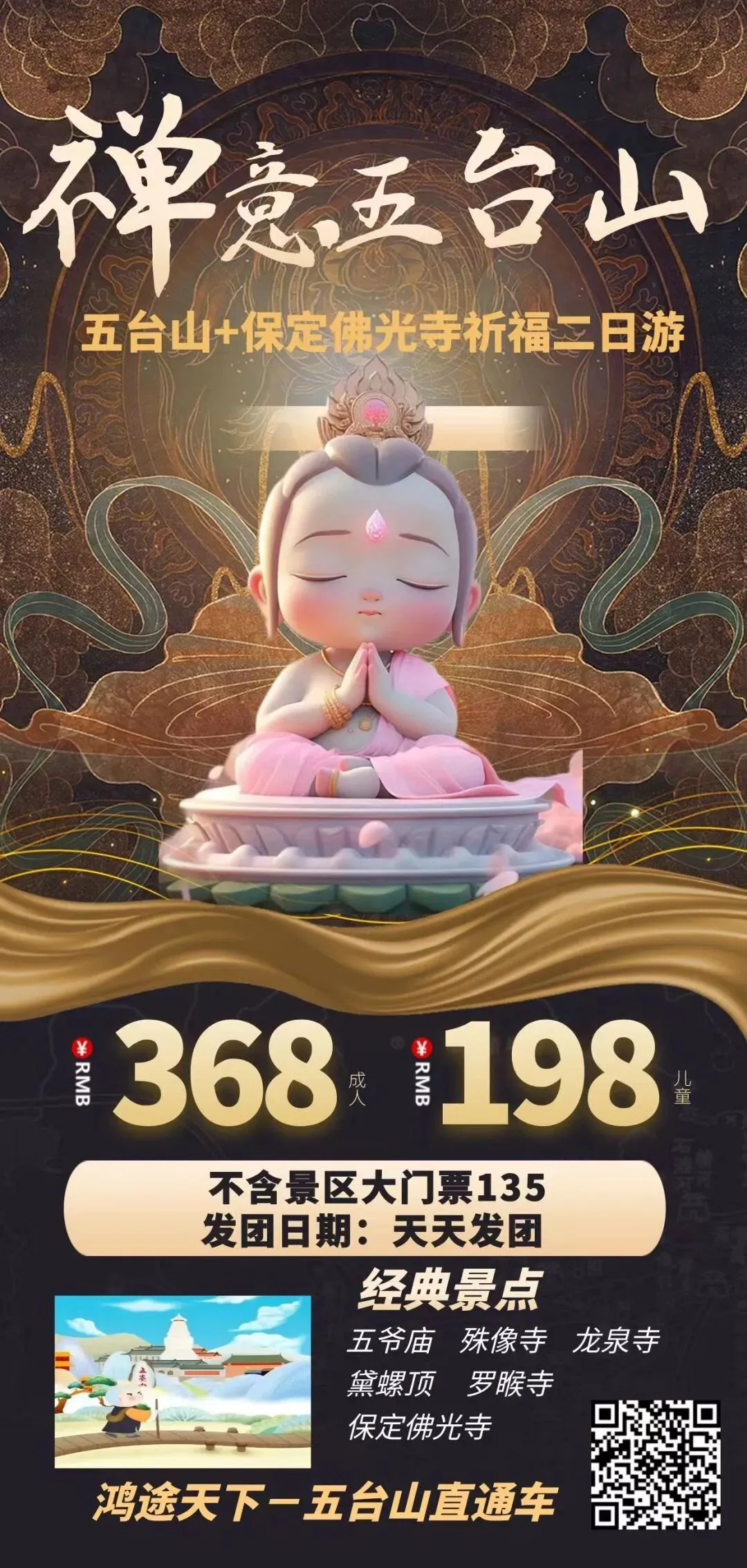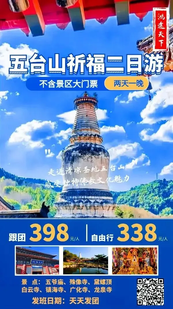 🔴五台山纯玩二日游 跟团398/自由行338