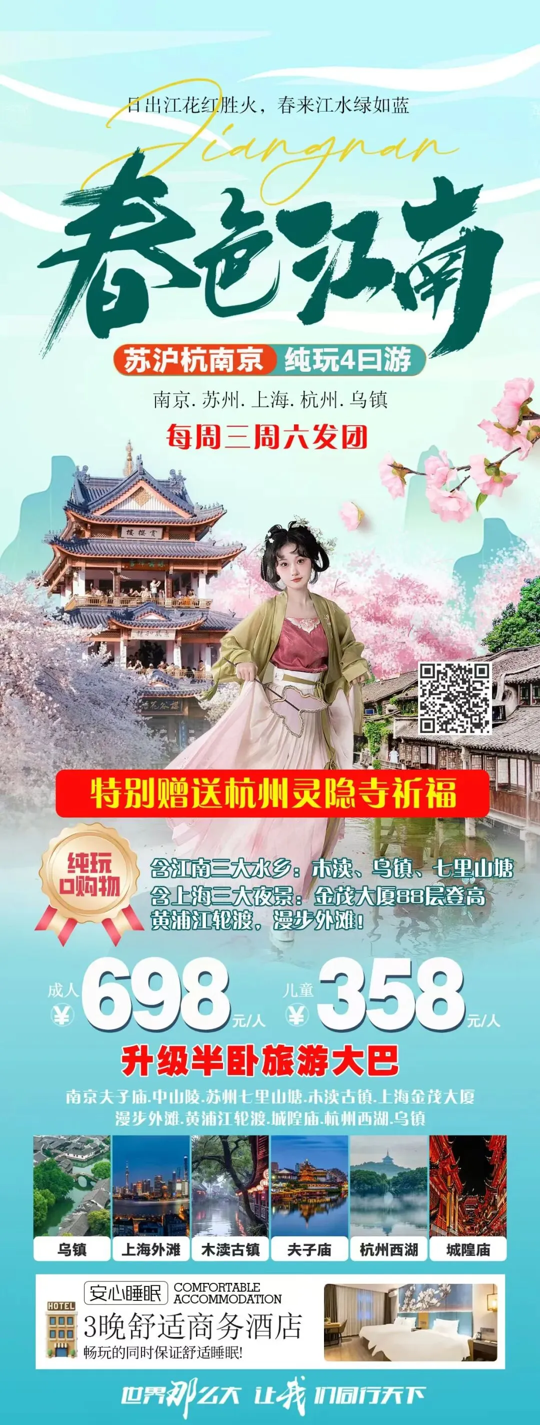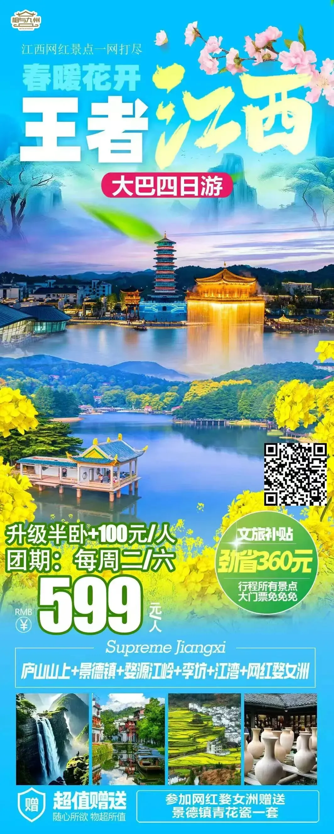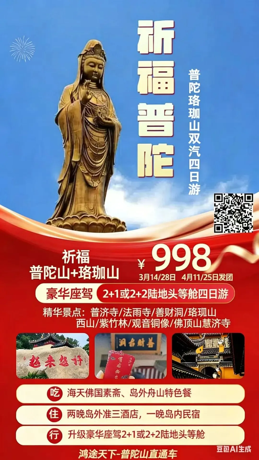 🧧祈福普陀山+珞珈山大巴四日游