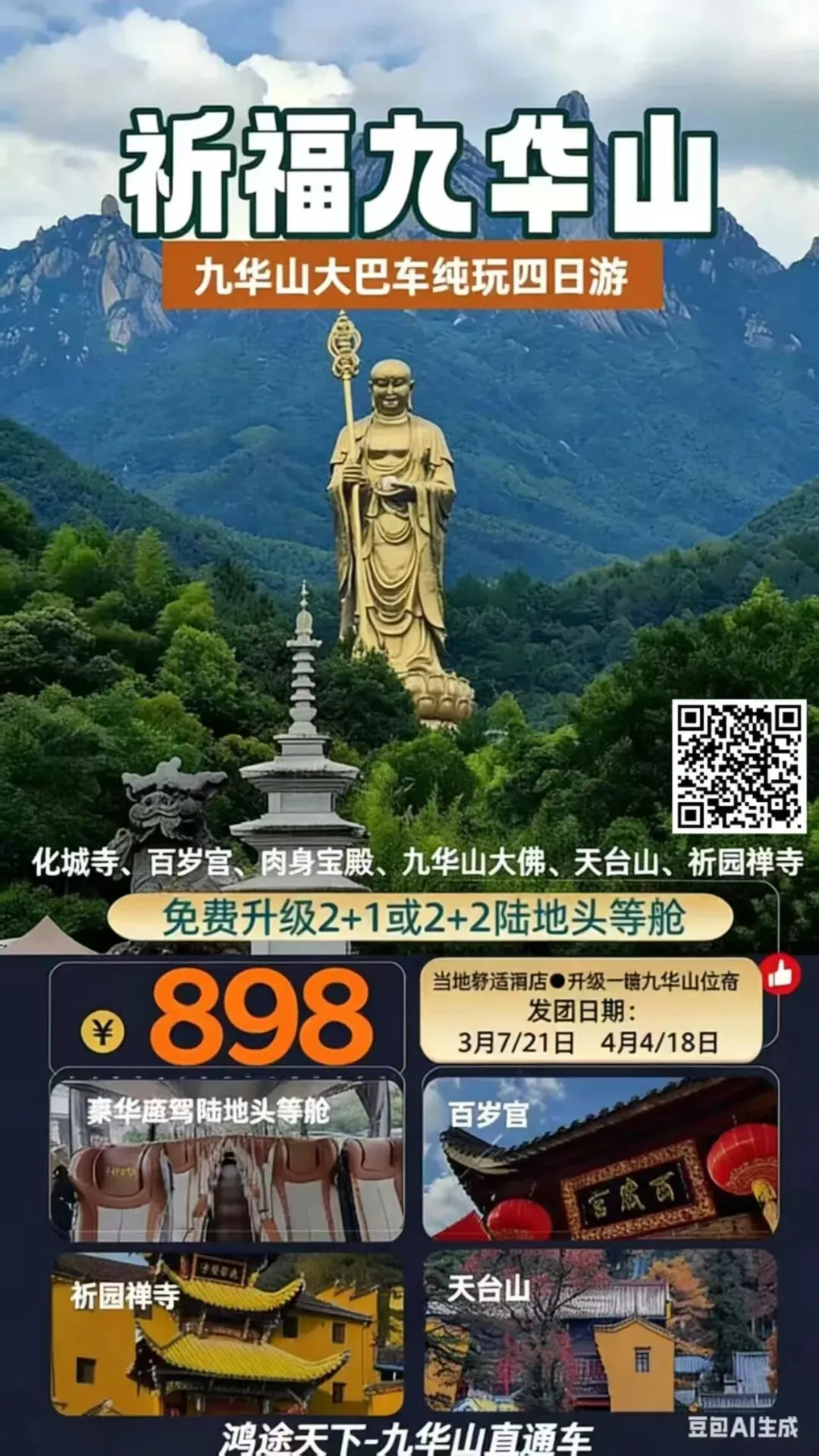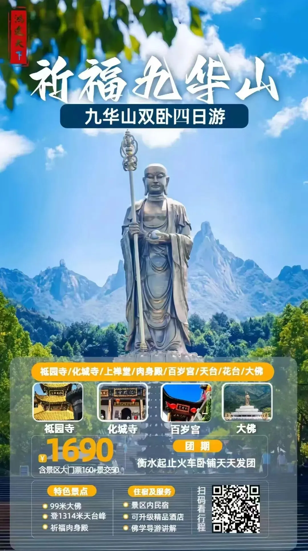 🧧九华山祈福大巴四日游