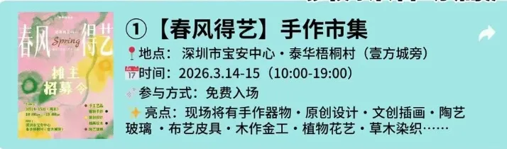 本站文章均为手工撰写未经允许谢绝转载:夜雨聆风 » 深圳3月周末活动合集!回暖赏花 + 市集 + 展览 + 演出全攻略