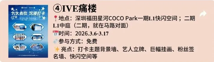 ✨ 亮点:IVE 专属痛楼打卡点,高清海报、应援装饰全覆盖,追星党拍照发圈必备,氛围拉满