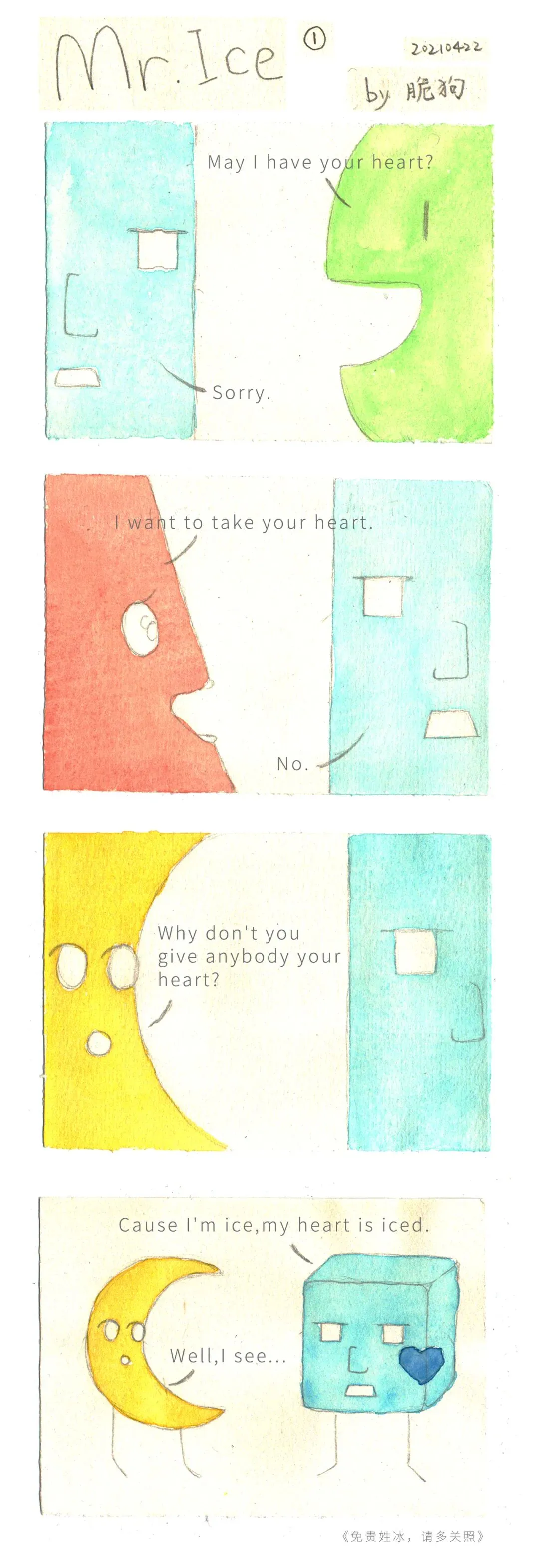 仍然是21年漫画微课时,画的结业系列。因为冒出灵感时,角色说的是英文,所以用了全英文台词。会有一些语法错误哈: