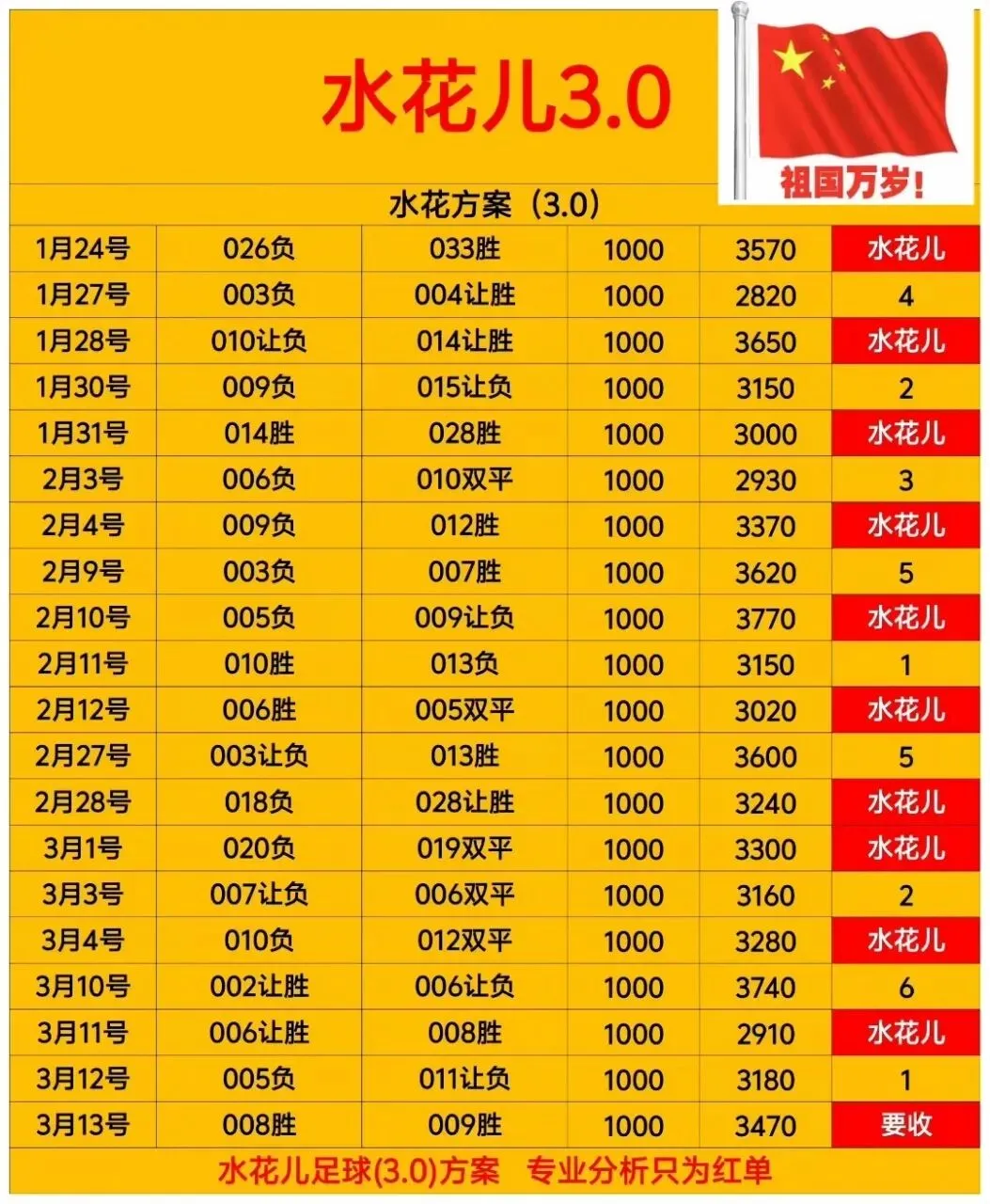【今日足球3.0计划合集汇总推荐】【足球抄底3.0】【足球3.0】【足球进球数】