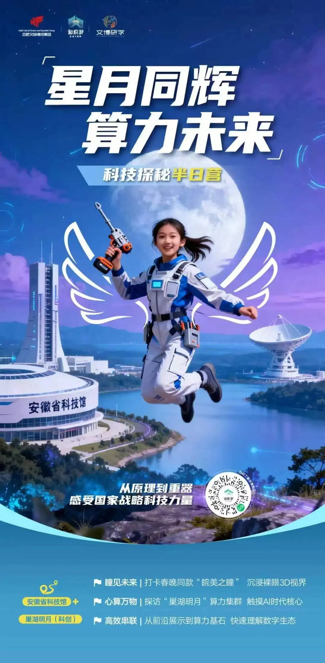打卡科技地标,探秘安徽省科技馆”裸眼3D球幕,走进“巢湖明月”算力集群,感受驱动AI的澎湃动力。