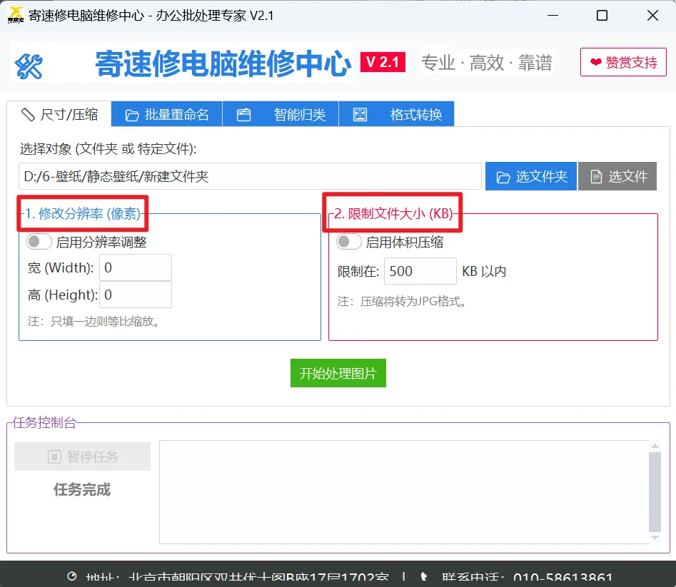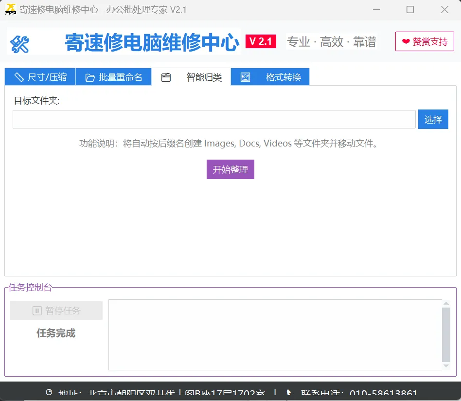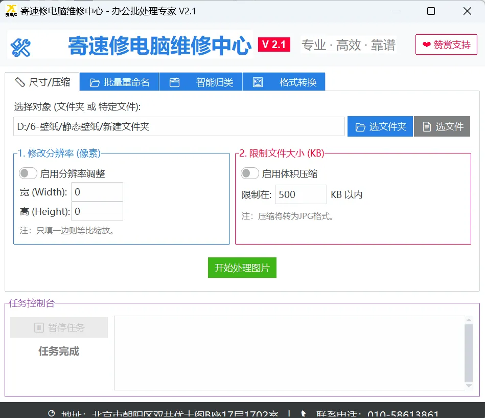 办公批处理专家是一款完全免费的集“图片压缩”、“批量重命名”、“文档智能归类”和“格式转换”于一体的工具。
