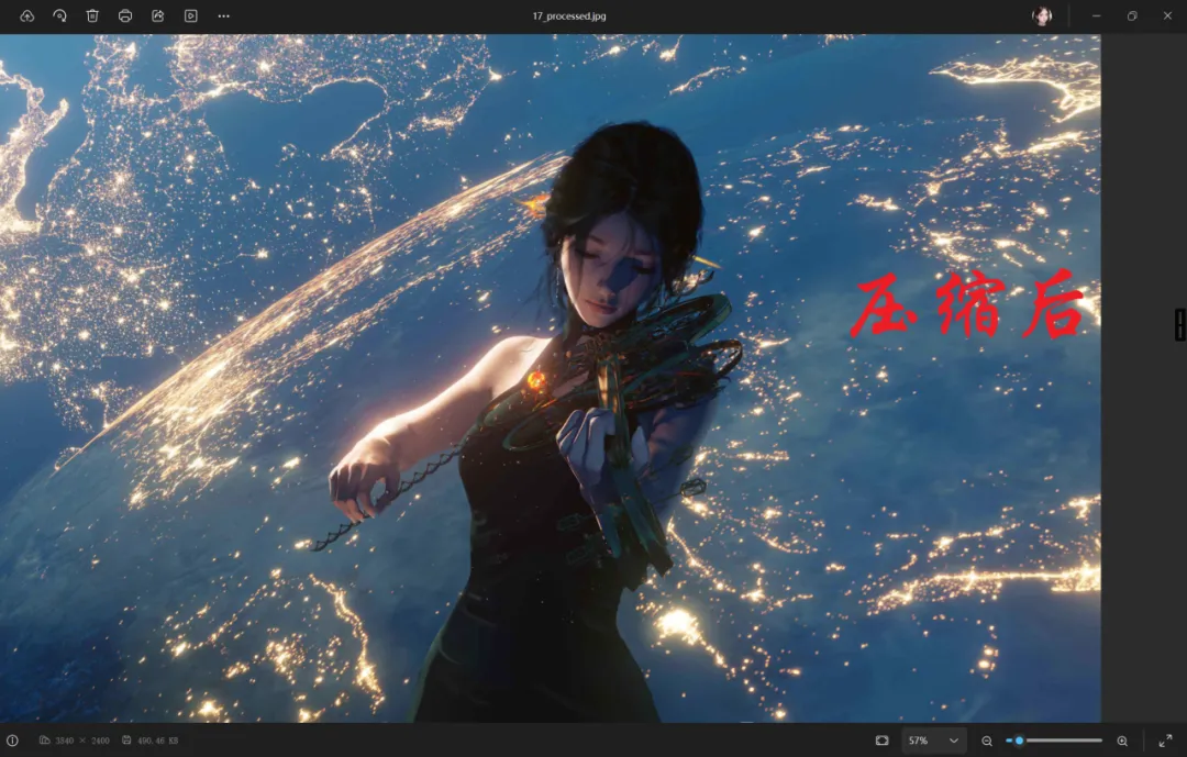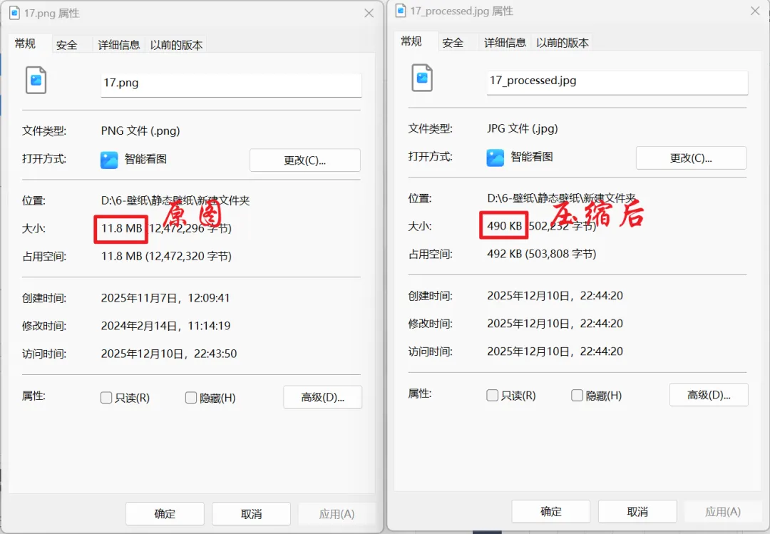 看看原图是11.8M,我限制了压缩在500KB以内,压缩后的图片是490KB。