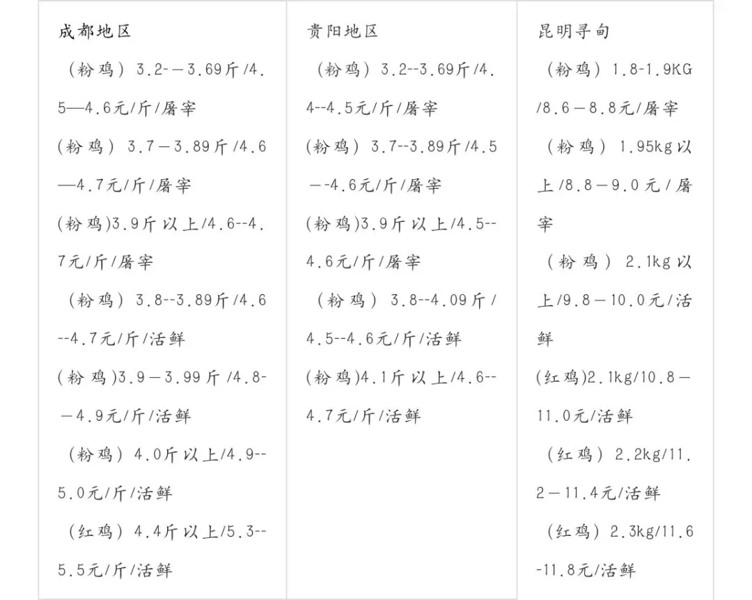 二、成都贵阳昆明淘汰鸡(3.8斤)价格: