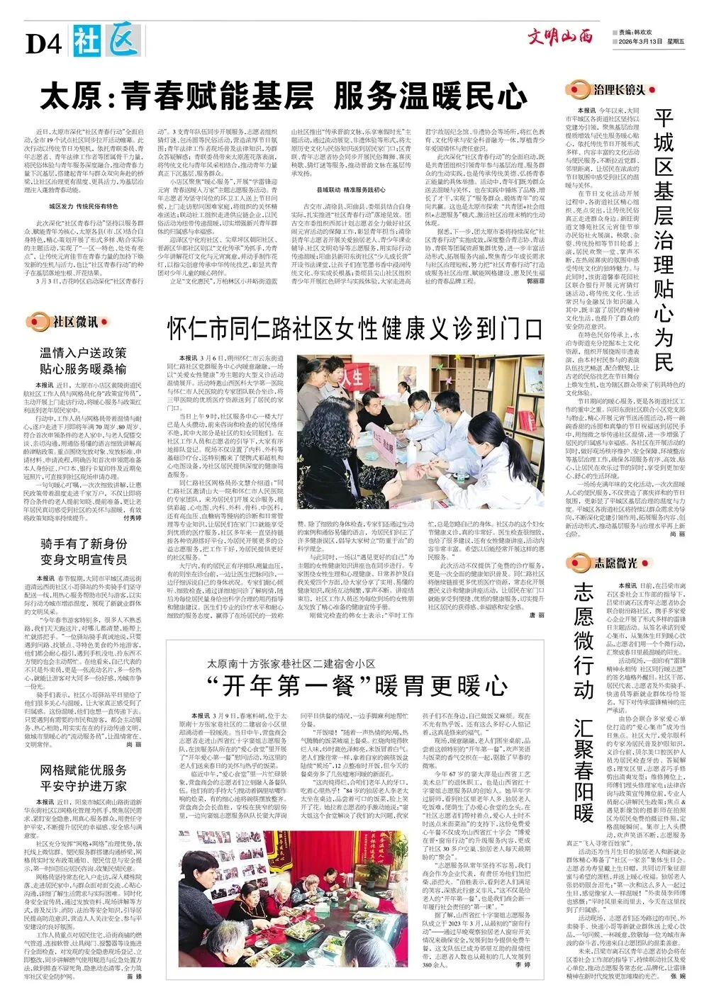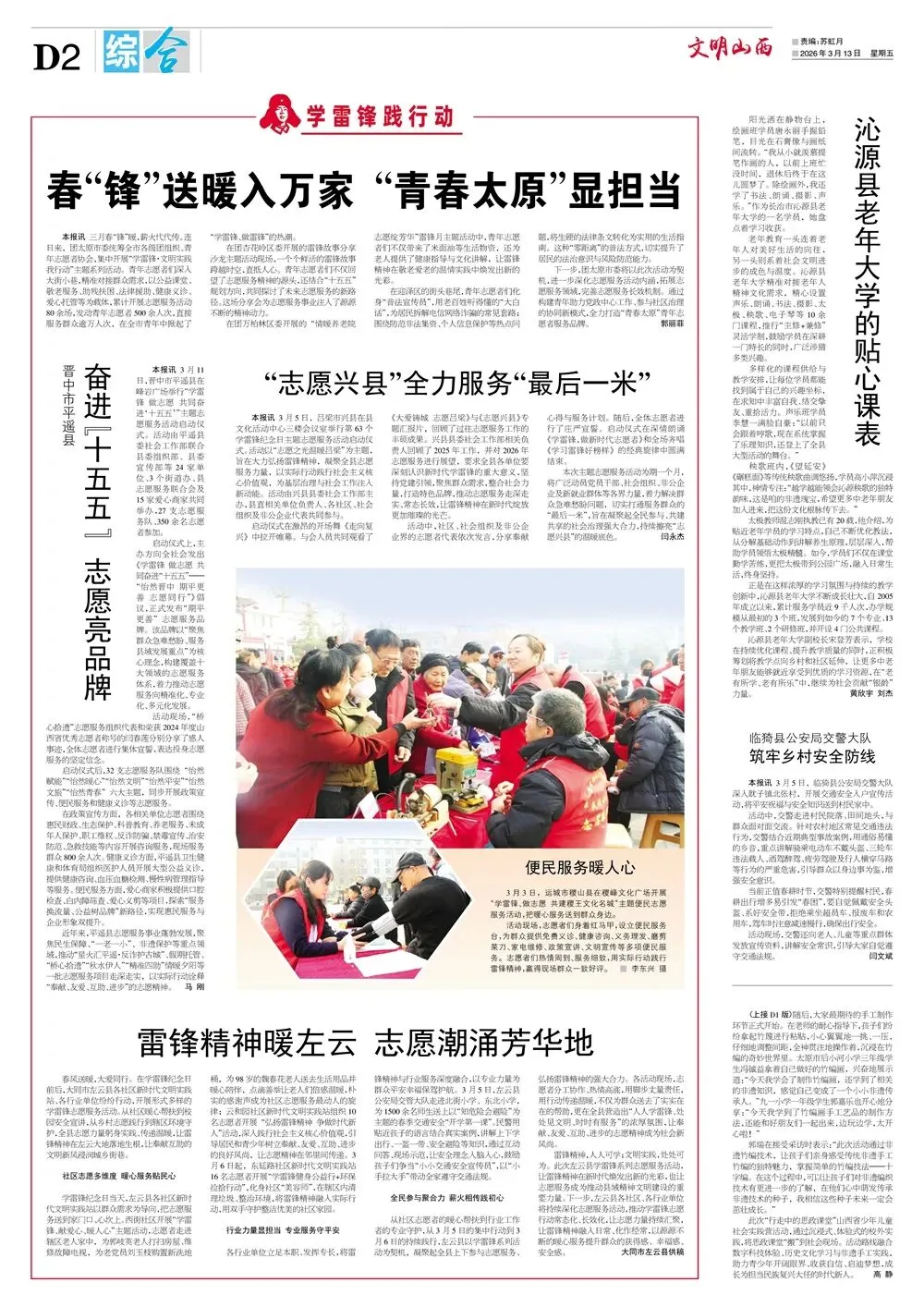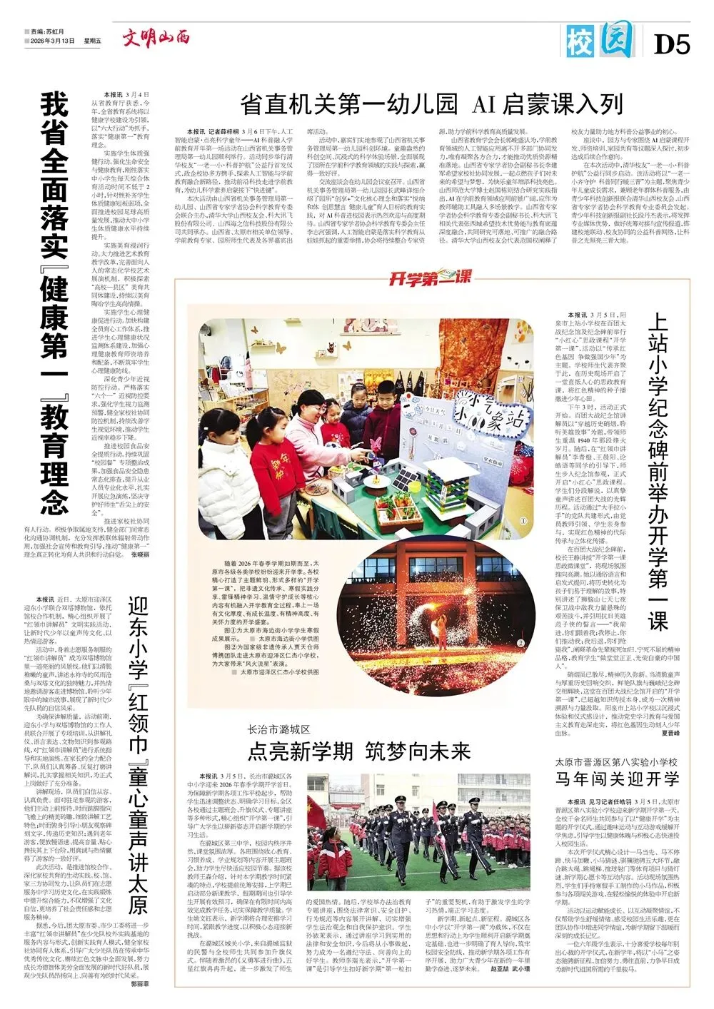 《文明山西》周刊3月13日电子版 核心提示 《文明山西》周刊由山西省文明办指导、科学导报社主办,是全省唯一的精神文明类报纸,对开八版,每周五出版,重点宣传山西省群众性精神文明“五大创建”活动、新时代文明实践中心建设、道德典型选树、学雷锋志愿服务等精神文明建设工作,兼顾报道全国各地精神文明创建活动先进经验和创新举措。 关注文明山西周刊视频号,观看更多精彩视频! 编 辑|郭 菲 审 核|常雅丽 ▍转载:如果转载请注明出处 ▍转载此图文仅为传递公众信息,若侵权请联系我们,我们将及时更正、删除,谢谢。 ▍邮箱:sxwmxyzk@163.com