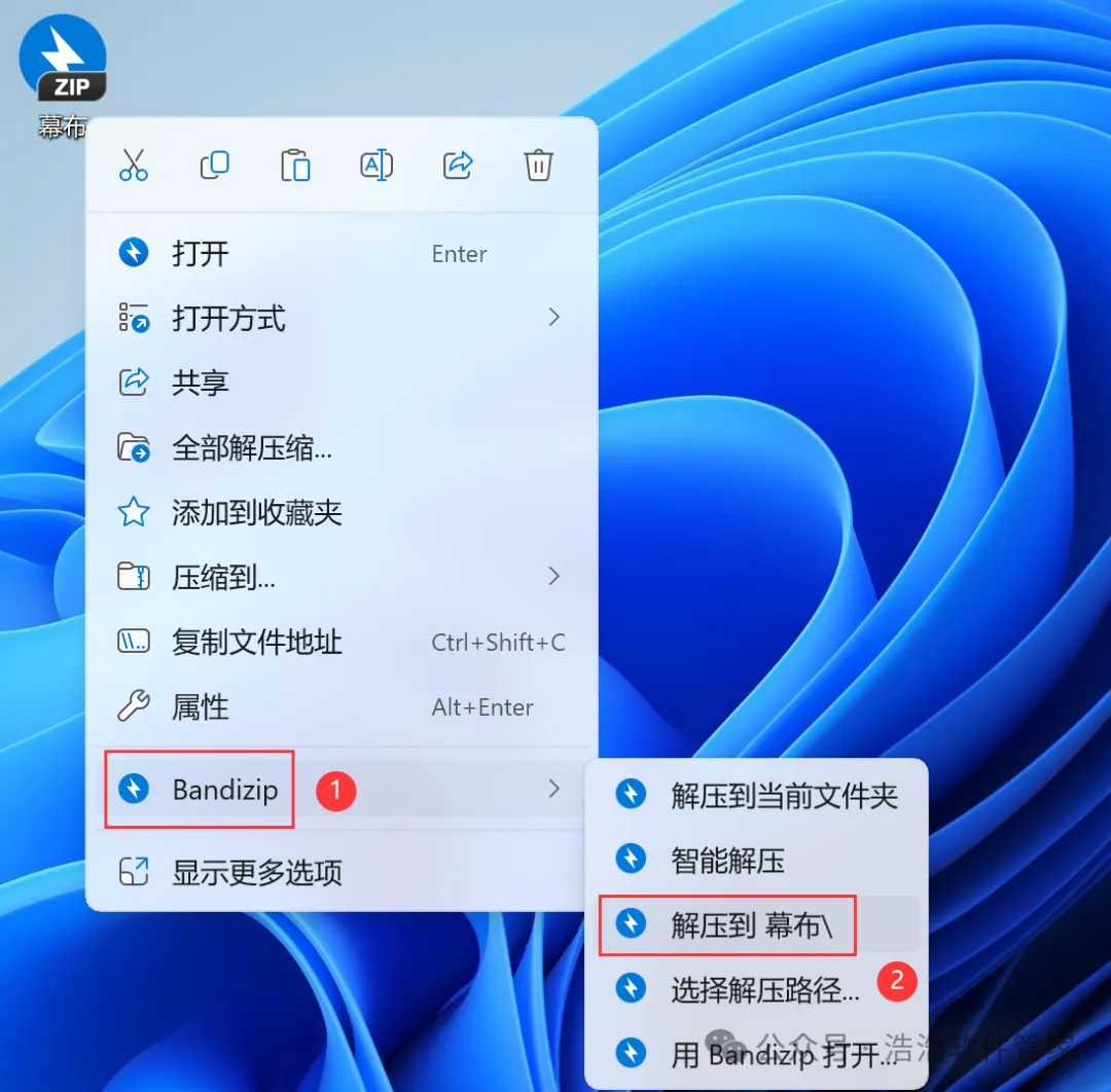 1、下载幕布软件安装包到电脑上,右键选择【解压到幕布\】
