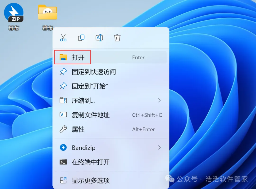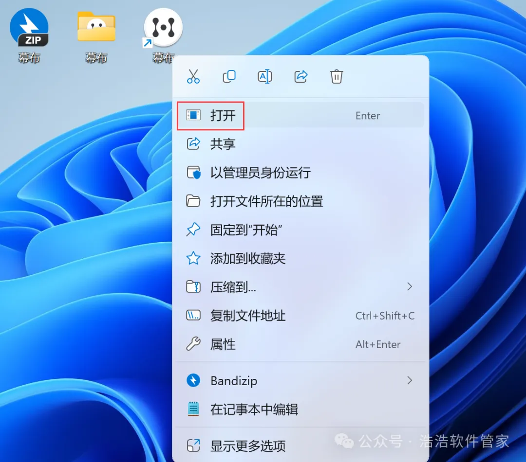 8、回到桌面,右键桌面上的【幕布软件图标】,点击【打开】