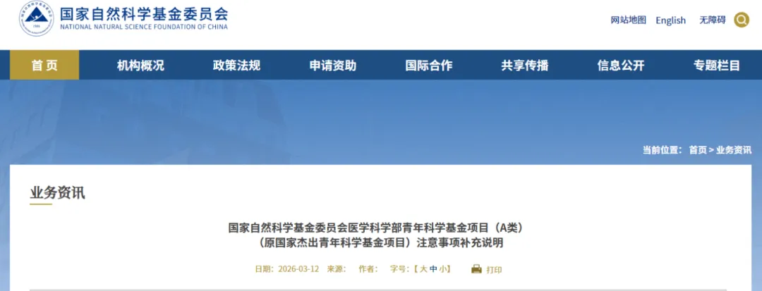 近日,国自然基金委就医学科学部青年科学基金项目(A类)作出补充说明(内容见下)。