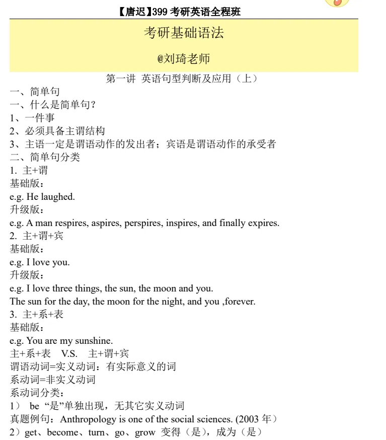 【27考研刘琦《考研英语基础语法讲义》pdf】