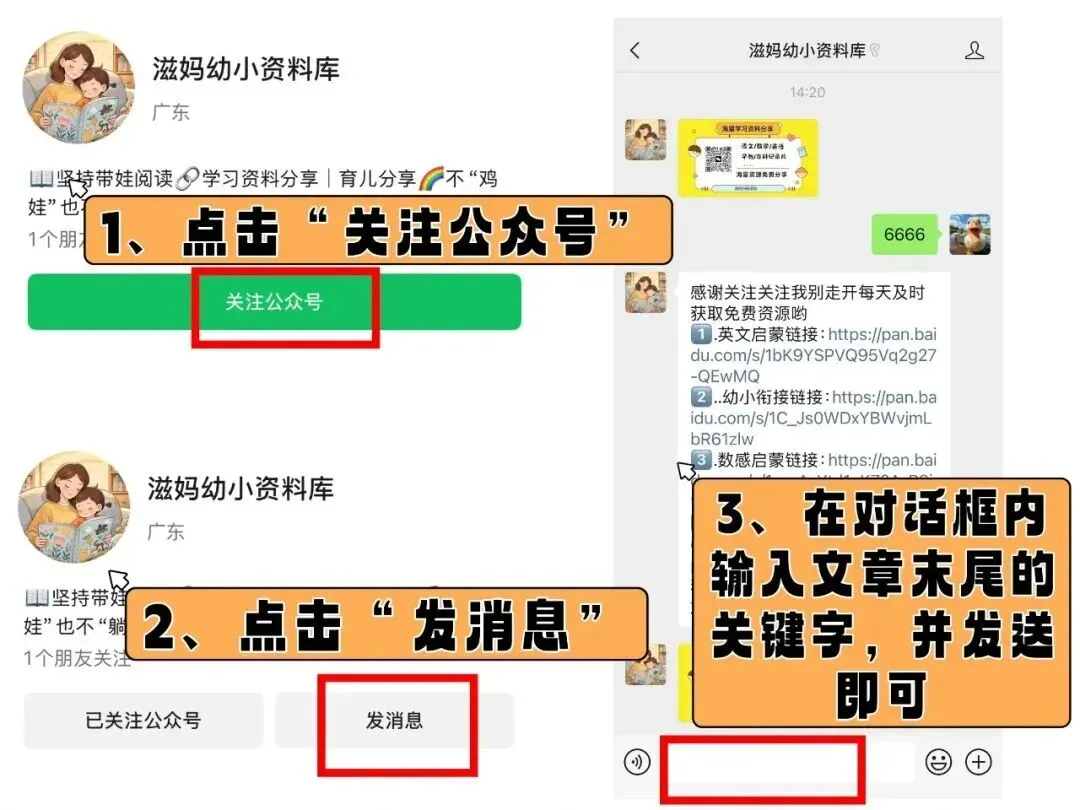 ②点击下方卡片,按下图步骤,关注后在对话框回复关键词6666